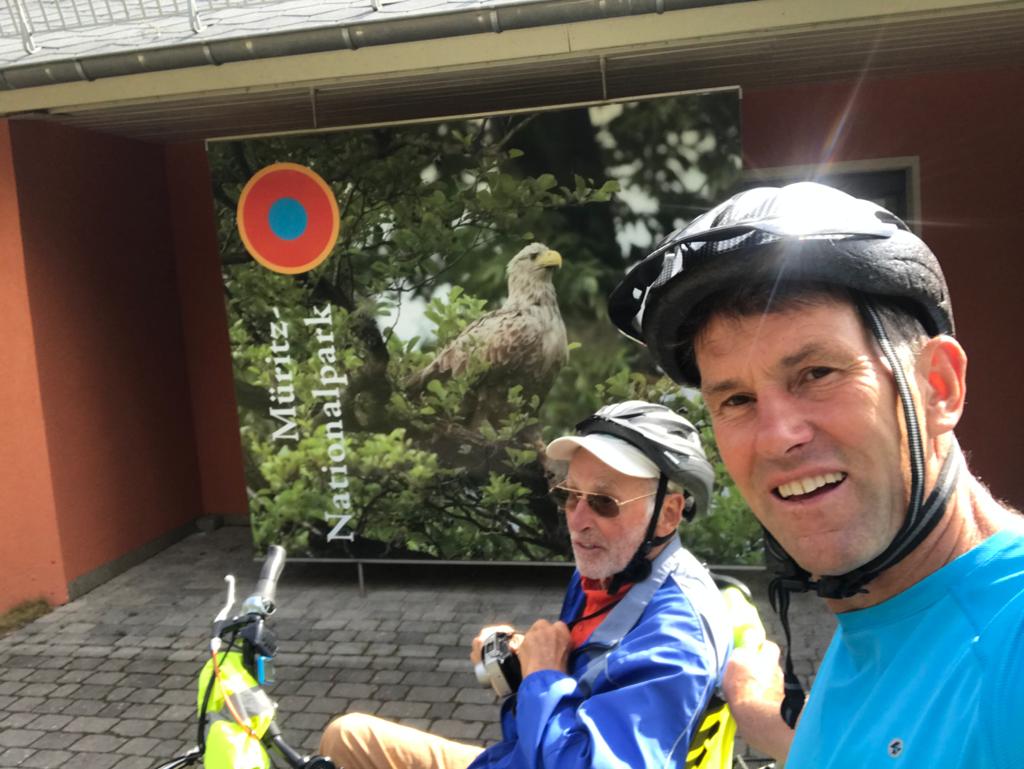 Gestartet wurde um 8.30 Uhr von Zuhause in der Fontanestraße und dann, bei bestem Radelwetter schön durch den Nationalpark, Schwarzenhof, Boek, kleiner Snack im Radlerrast “Trafohaus Rechlin“, wo auch kurz der Akku nachgeladen wurde.