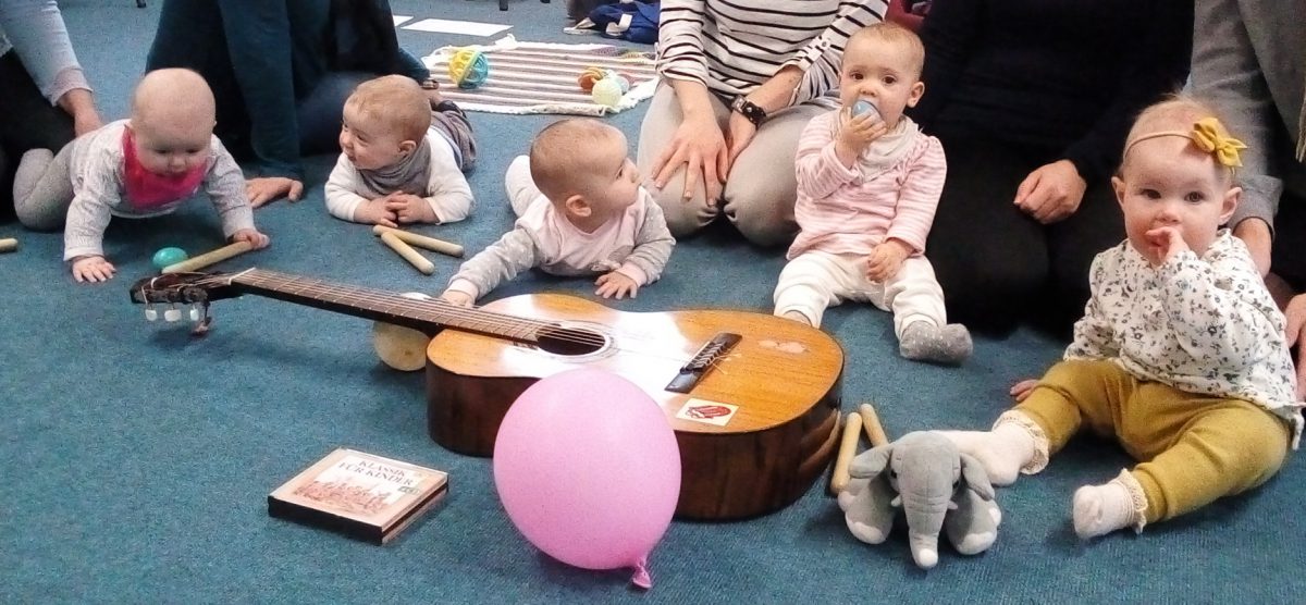 Im Kurs der Kreismusikschule Müritz „Mit Musik durch’s erste Lebensjahr“ können sich Eltern mit Kleinstkindern jeden Dienstag Vormittag treffen und austauschen. Was gibt es schöneres, als ein gemütliches Krabbel-Stündchen in gleichgesinnter Runde mit Gitarrenklängen, alten und neuen Kinderliedern? Wo man vergessene Lieder und ihre Texte wieder in Erinnerung rufen kann und Reime für Fingerspiele oder Massagen kennen lernt, wo sich die Babys mit ersten Instrumenten vertraut machen und im gemeinsamen Gesang der Eltern Musik erleben.