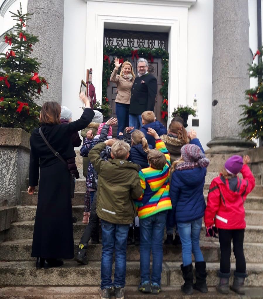 Nach dem gemütlichen Frühstück gab es eine Hausführung mit Besichtigung der wunderschön geschmückten Räume, vorbei an dekorierten Weihnachtsbäumen und handgearbeiteten „Riesen-Pyramiden“.