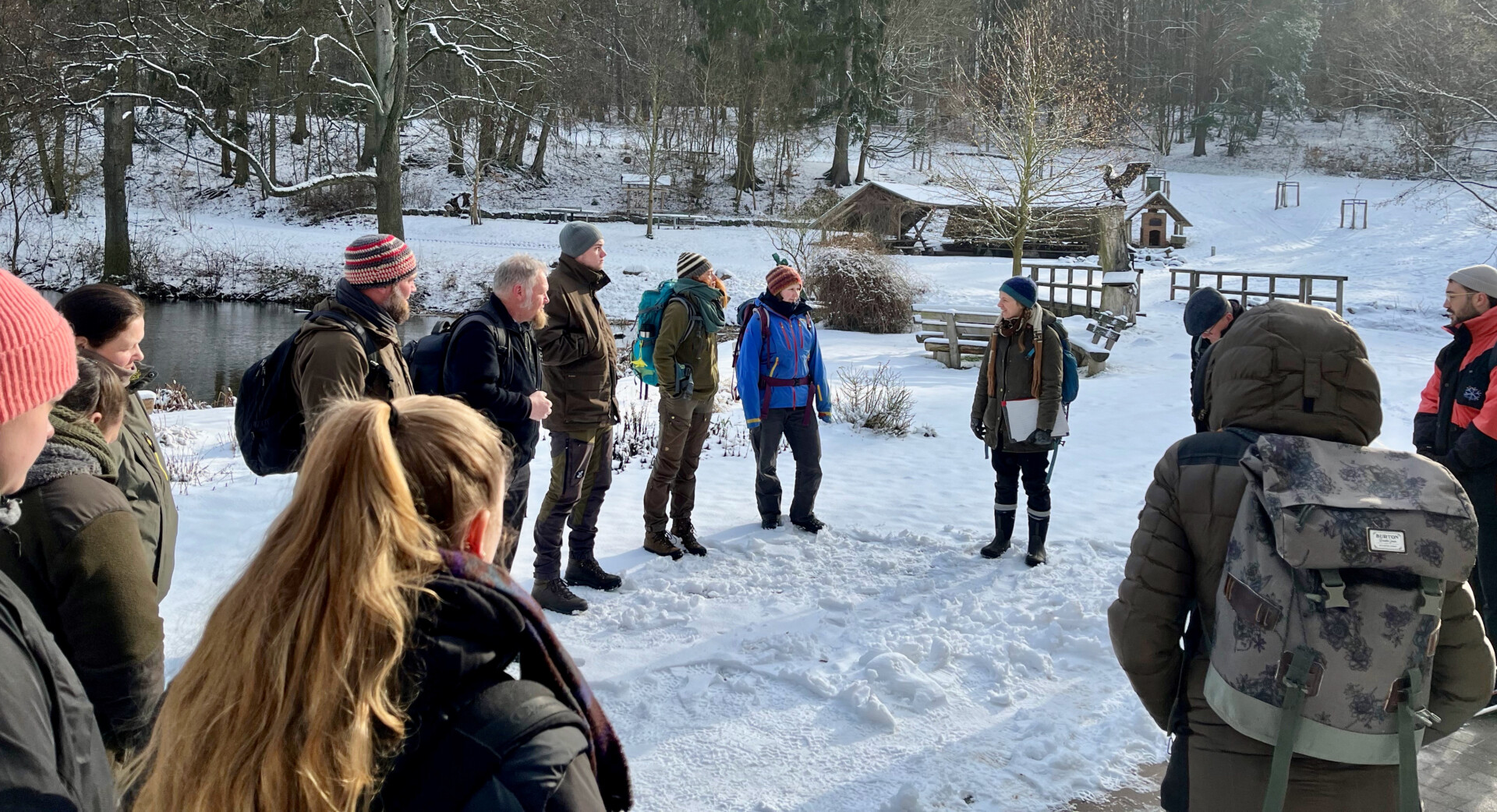 Bild: Am verschneiten Jugendwaldheim begann der Tag mit einer Exkursion in die umliegenden Moore.