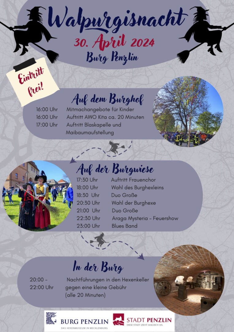 Wer sich in den feinsten Hexenzwirn hüllt, hat vielleicht sogar die Chance zum zauberhaftesten Hexlein und zur schaurig-schönsten Hexe gekürt zu werden – natürlich durch niemand geringeren als den sagenumwobenen Penzliner Burgteufel.