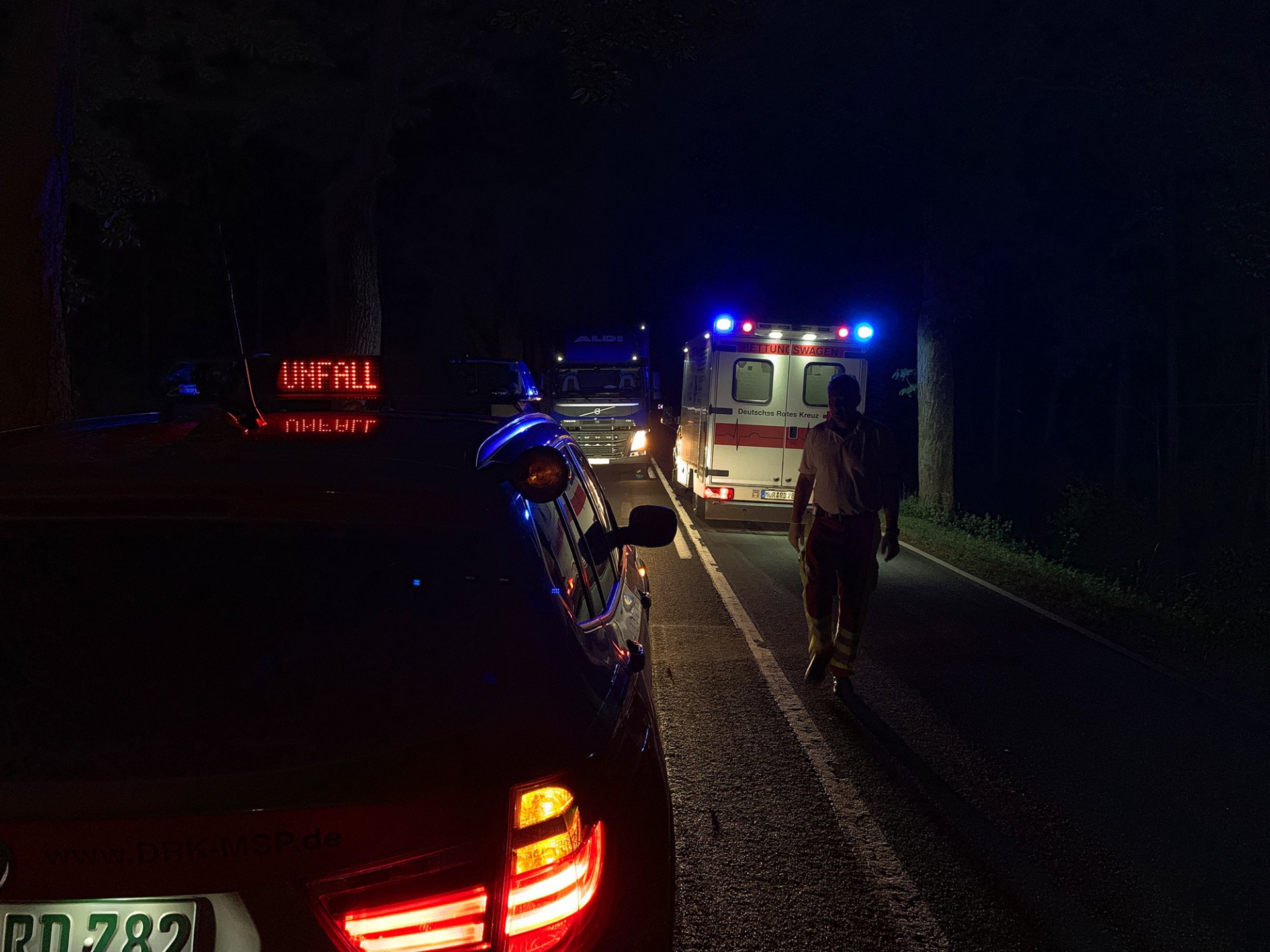 Es dauerte eine Ewigkeit bis am Ende die Rettungskräfte am Unfallort eintrafen. Es muss gegen 22:25 Uhr gewesen sein, als der 37-jährige Motorradfahrer aus der Müritz-Region die Landesstraße 24 zwischen Wittstock und Wredenhagen passierte. Kurz vor der Ortschaft Neukrug rannte plötzlich ein Reh auf die in der Nacht kaum befahrene Straße. Der Motorradfahrer kollidierte mit dem Reh und stürzte mit seiner 900er Maschine. Mit schweren Verletzungen blieb der Mann auf der Straße liegen und war selbst nicht in der Lage Hilfe zu rufen.