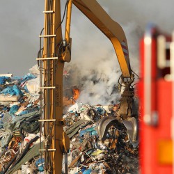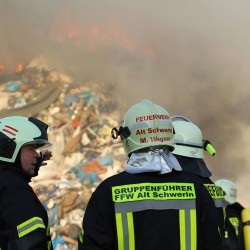 Die Löscharbeiten werden bis in die Nacht hinein andauern. Insgesamt brennen über 1.500 Tonnen Müll- und Bauabfälle.