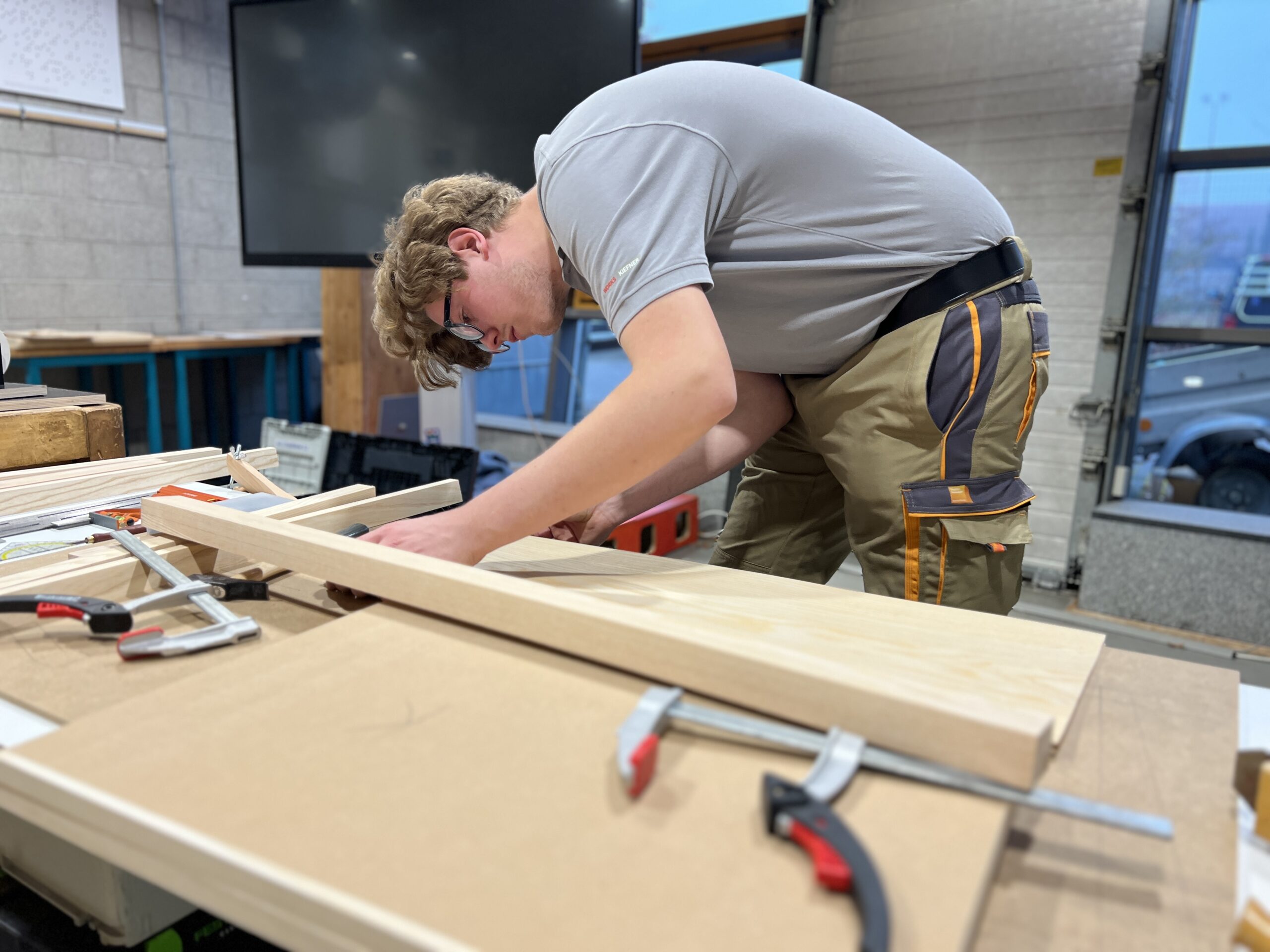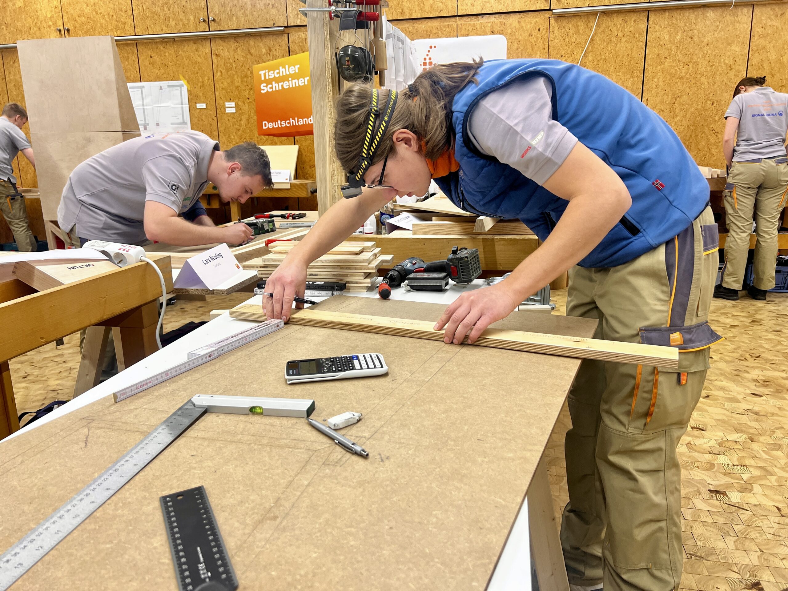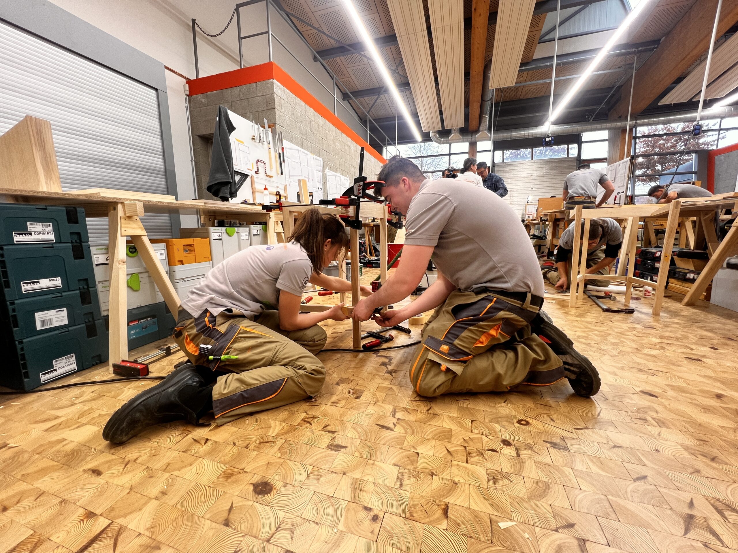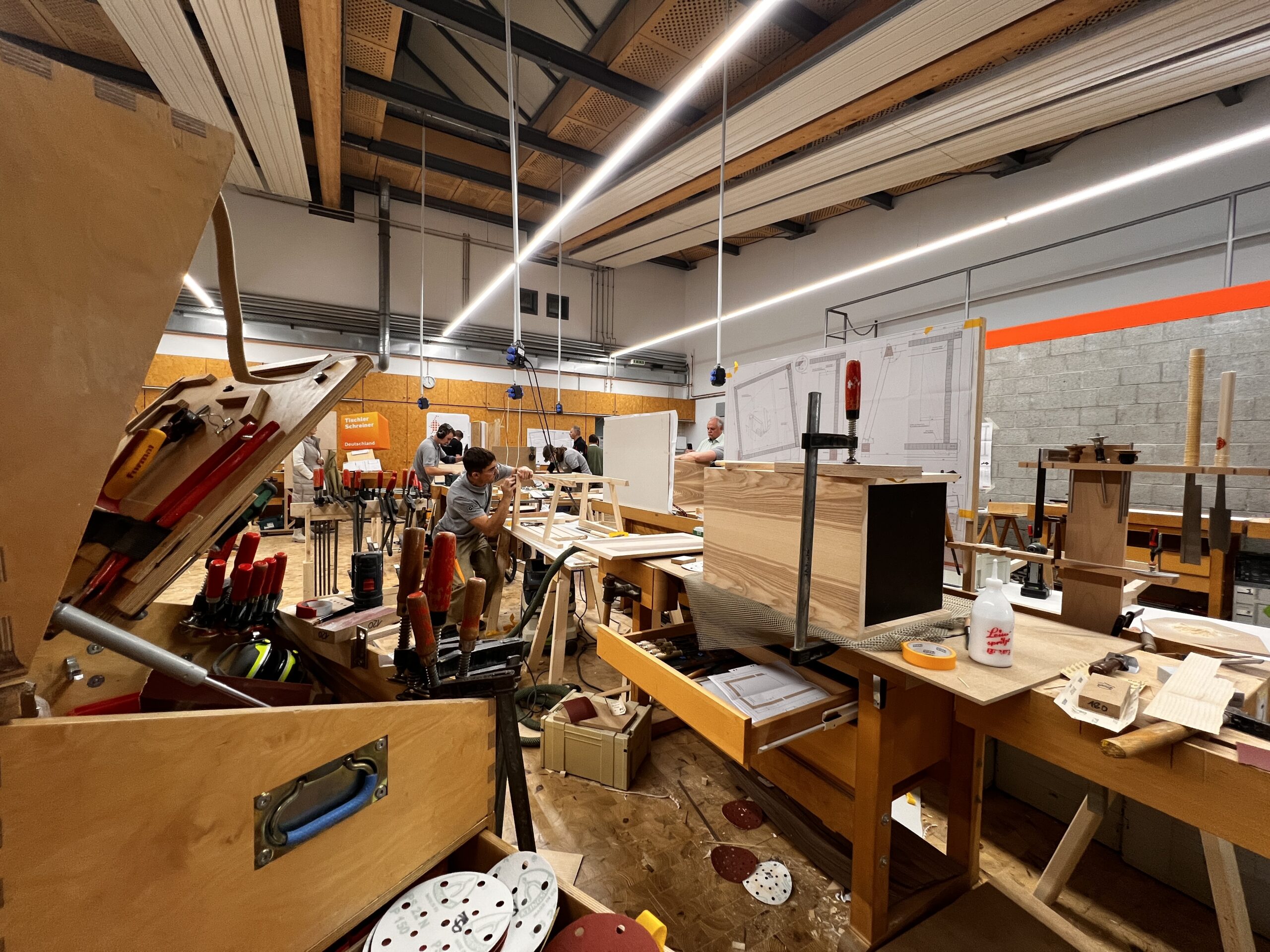 Was die jungen Fachkräfte leisteten, war in jeder Hinsicht beeindruckend: höchste Präzision, bemerkenswertes Zeitmanagement, enorme Konzentration und echtes handwerkliches Können. Alle Teilnehmer mussten eine „Schrägothek“ bauen, ein Designmöbelstück, das es in sich hatte. Genutzt werden kann es als eine Art Mini-Schreibtisch, aber eben mit einer besonderen Form.