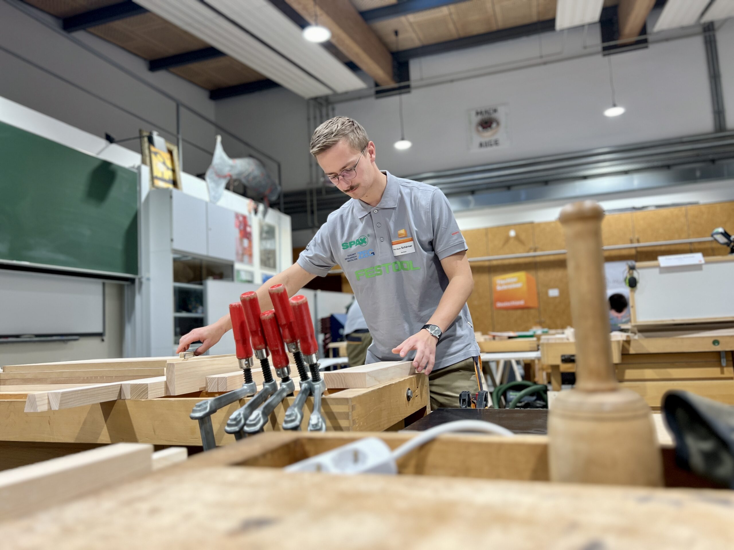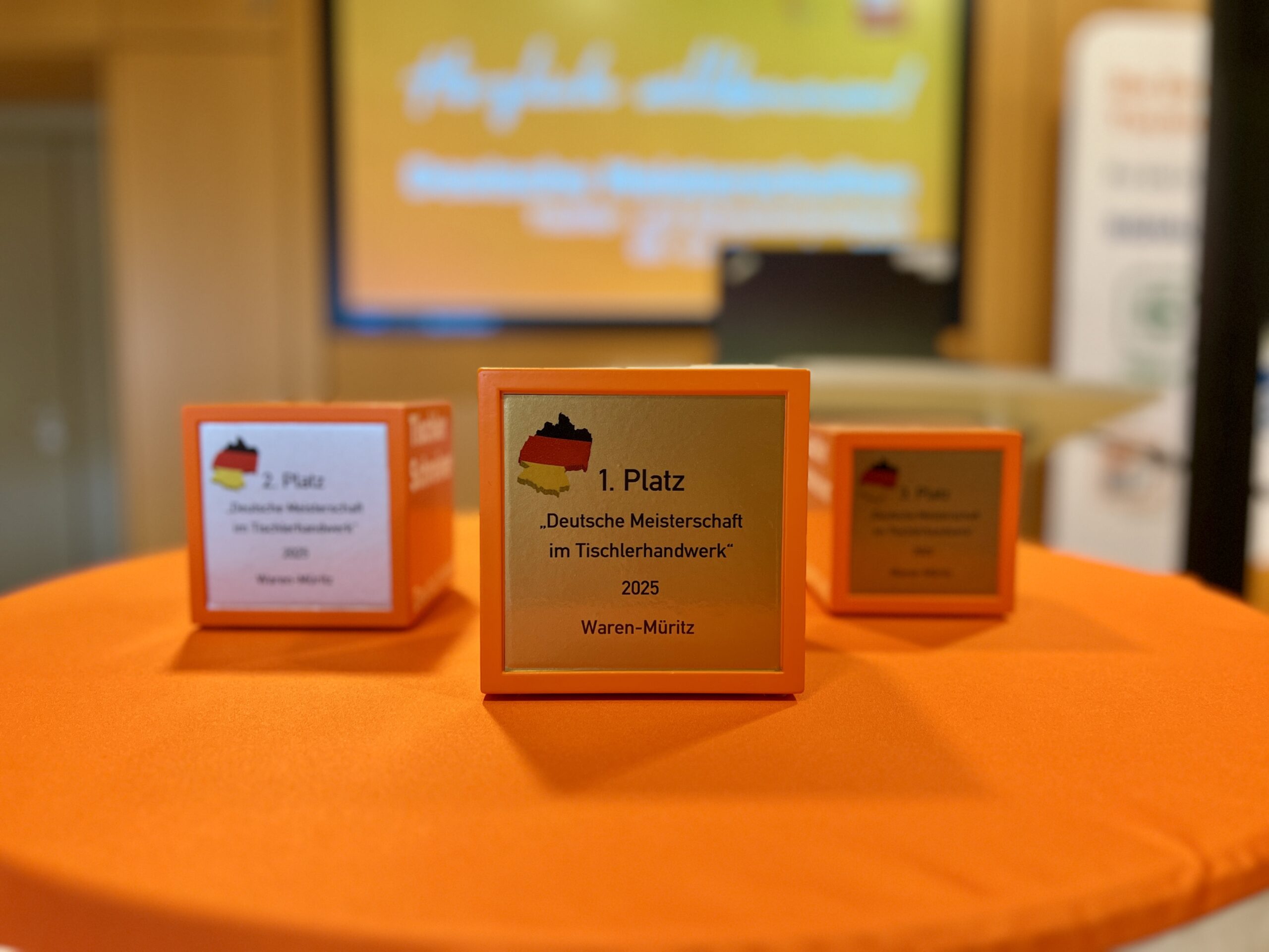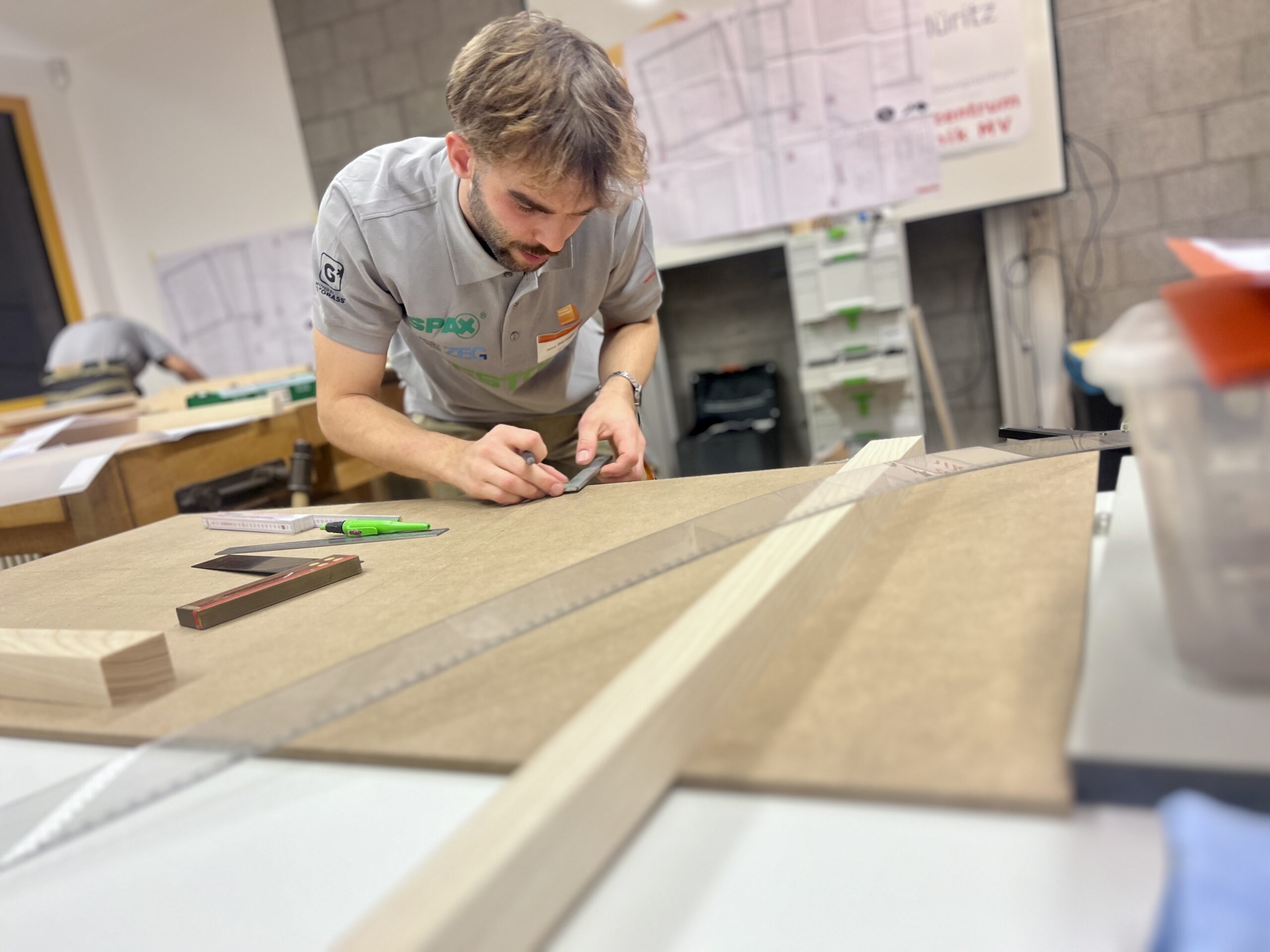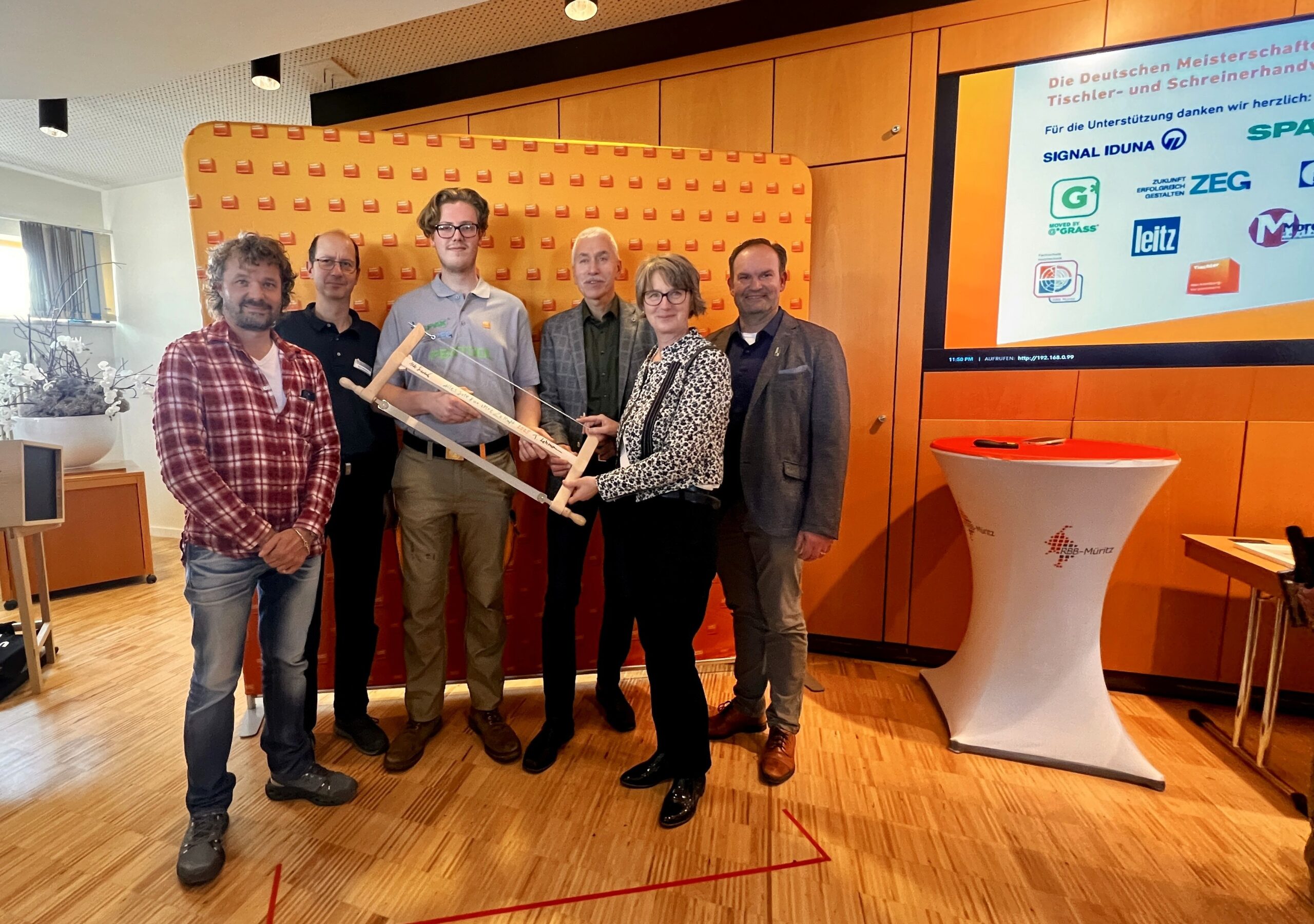 Für das RBB Müritz war es eine besondere Freude, einen eigenen Absolventen im Teilnehmerfeld begrüßen zu dürfen: Oscar Valentin Rehders aus Kröpelin, der im Sommer dieses Jahres seine Berufsausbildung im Tischlerhandwerk am RBB Müritz erfolgreich abgeschlossen hat, vertrat Mecklenburg-Vorpommern bei den Deutschen Meisterschaften. Mit großem Engagement, sauberer handwerklicher Ausführung und spürbarer Leidenschaft für seinen Beruf zeigte Oscar Valentin eine beeindruckende Leistung und machte deutlich, wie viel Talent im Nachwuchs unseres Bundeslandes steckt.
