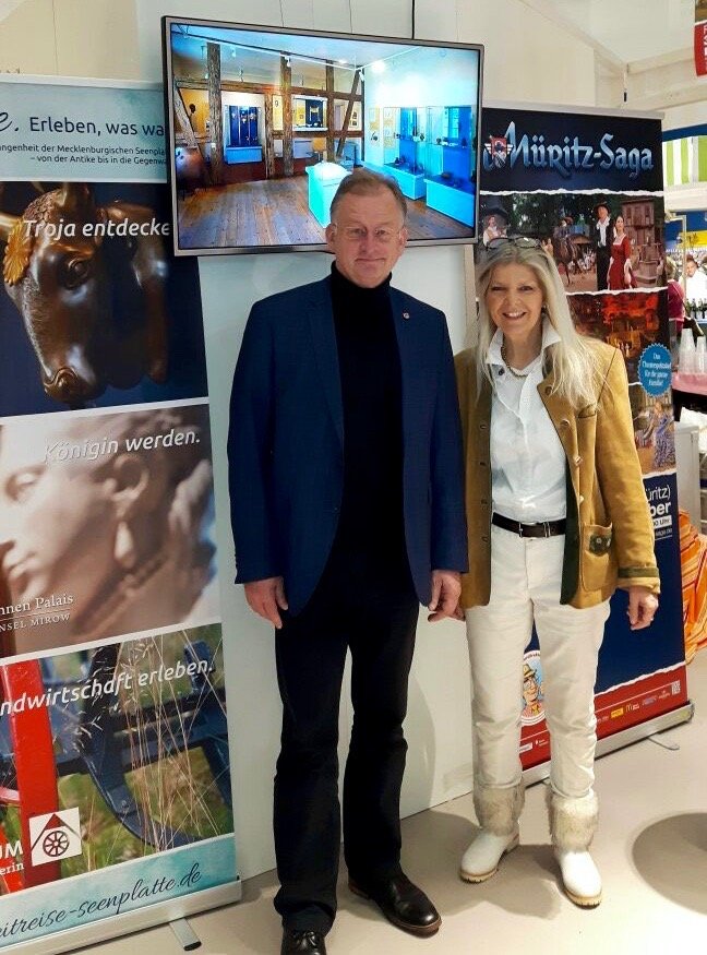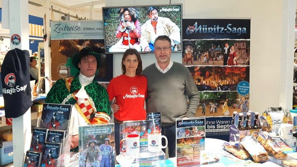 Auf der beliebten Internationalen Grünen Woche in Berlin präsentieren sich 63 Aussteller aus Mecklenburg-Vorpommern und natürlich auch wieder Firmen aus der Müritz-Region. Erstmals mit dabei in diesem Jahr: Die Müritz-Saga. Und auch wenn sie nicht zu den klassischen Ausstellern in der eher kulinarisch geprägten MV-Halle zählt, freuen sich Nicole und Nils Düwell an ihrem Stand über viele interessierte Besucher.