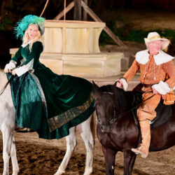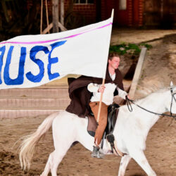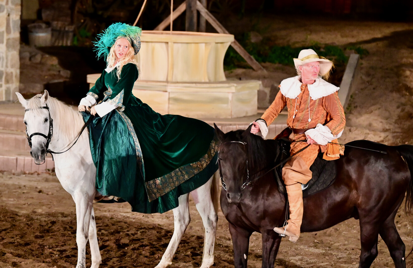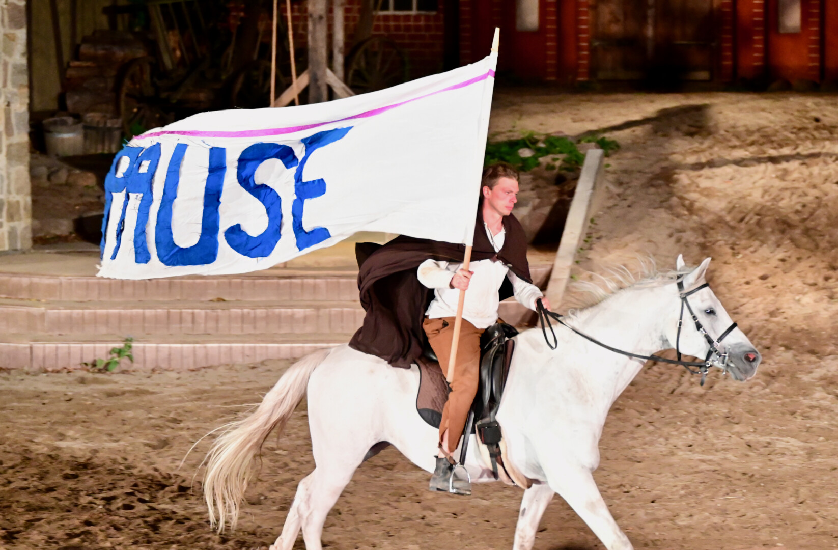 Dafür kamen aber viele Einheimische, die es bislang noch nicht geschafft hatten, mit den Schauspielern auf „Schatzsuche“ zu gehen. Sie erlebten einen vergnüglichen Abend mit einer kleinen Schrecksekunde: Ein Pferd rutschte aus und fiel samt Reiter um. Zum Glück ist nichts passiert, Pferd und Reiter geht es gut, wie Nils Düwell im Anschluss beruhigen konnte.