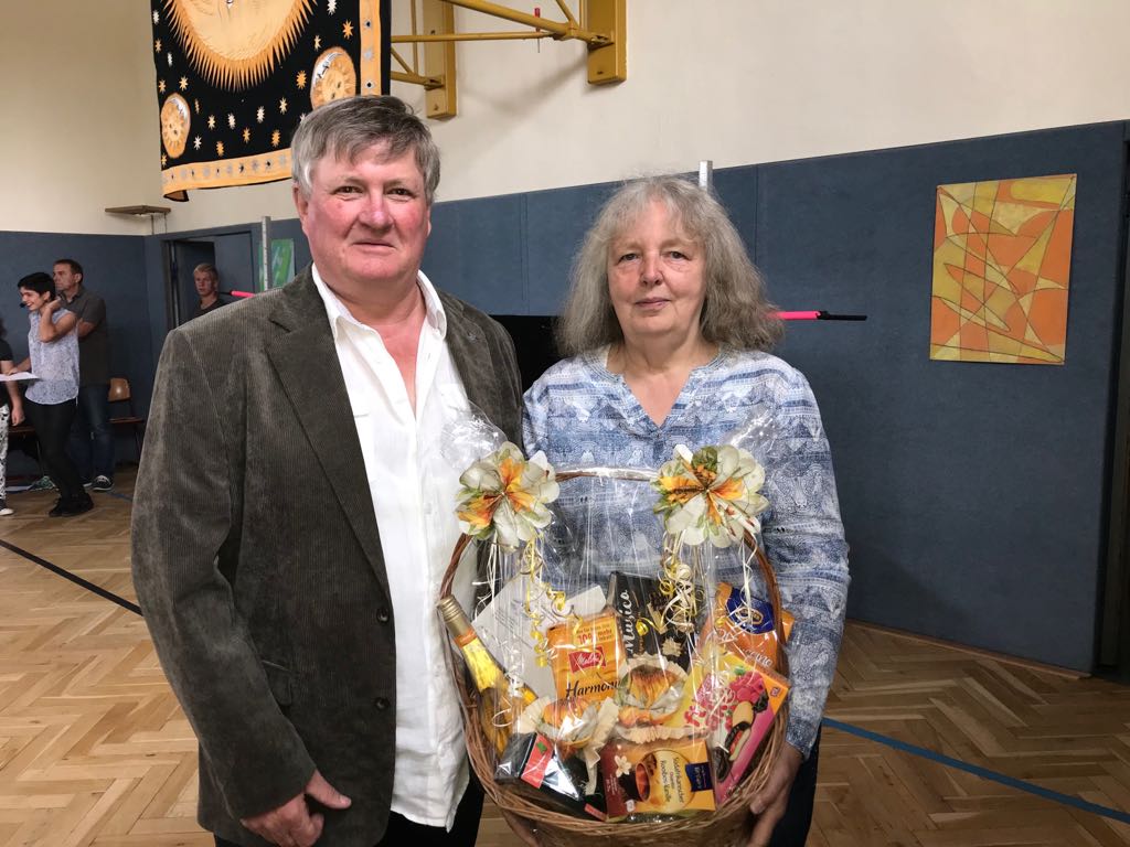 Schulleiter Lothar Lotzkat und Hanni Rossek, Chefin des Behindertenverbandes bei der Jubiläumsfeier.