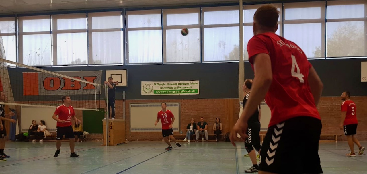 Unerwarteter Doppelerfolg der ersten Herren: Dass man vom ersten Spieltag in Greifswald nach dem Aufstieg in die Verbandsliga mit zwei Siegen sowie fünf Punkten im Gepäck die Heimreise antreten würde, davon hatten die Volleyballer des SKV Müritz im Vorfeld vielleicht maximal geträumt. Dass dieser Traum am Ende Realität wurde, war das Ergebnis einer leidenschaftlich kämpfenden und auch spielerisch deutlich verbesserten SKV-Mannschaft. Aber der Reihe nach…