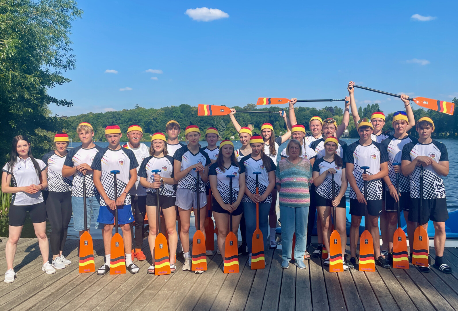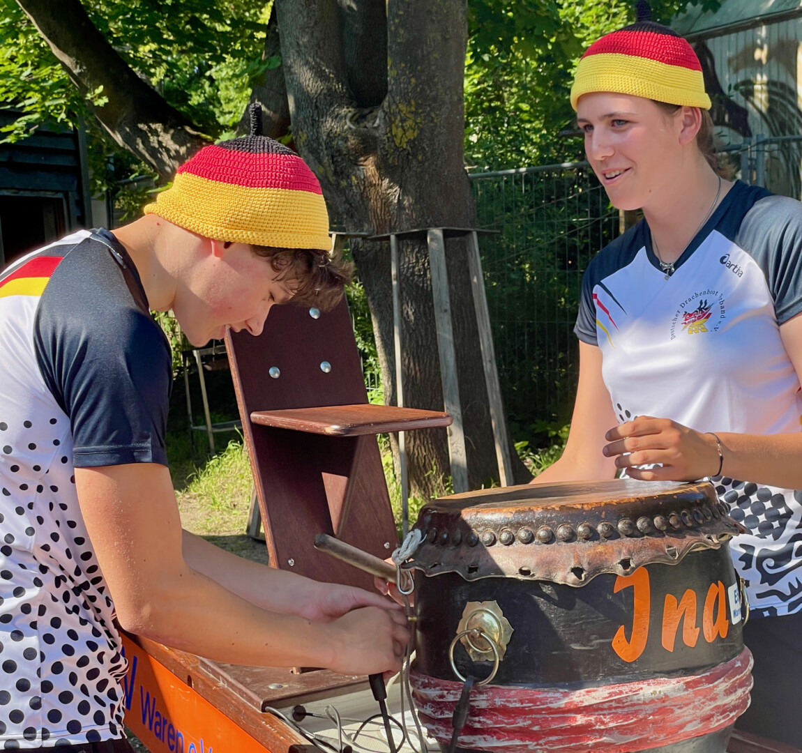 Sie sehen mit ihren coolen Mützchen aus wie Fans der deutschen Fußball-Nationalmannschaft im EM-Fieber. Sind sie vielleicht auch. Aber die jungen Mädchen und Frauen, die sich gestern Abend am Tiefwarensee getroffen haben, sind selbst eine Nationalmannschaft. Das Team um Ingo Warnke fährt am kommenden Dienstag als Deutsche Junioren-Nationalmannschaft zur Drachenboot-Europameisterschaft. Die meisten von ihnen sind Schüler des Richard-Wossidlo-Gymnasiums Waren, zwei Mädchen lernen im Schloss Torgelow und vier Jugendliche kommen aus Süddeutschland dazu. Sie alle haben ein Ziel: Titel gewinnen. Dass die Müritzer durchaus das Zeug dafür haben, konnten sie schon im vergangenen Jahr bei der Europameisterschaft in Italien beweisen, als sie mit mehreren Titeln und Vizetiteln zurückkehrten. Jetzt geht’s also wieder zur EM. Aber nicht nur das, im September steht die Weltmeisterschaft – wieder in Italien – an. Immer mit dabei: Die gehäkelten Mützen von Grete Jungnitsch. Die fast 85-Jährige hat die neuen Kappen in Schwarz/Rot/Gold in ganz kurzer Zeit für die jungen Sportler in Handarbeit produziert.