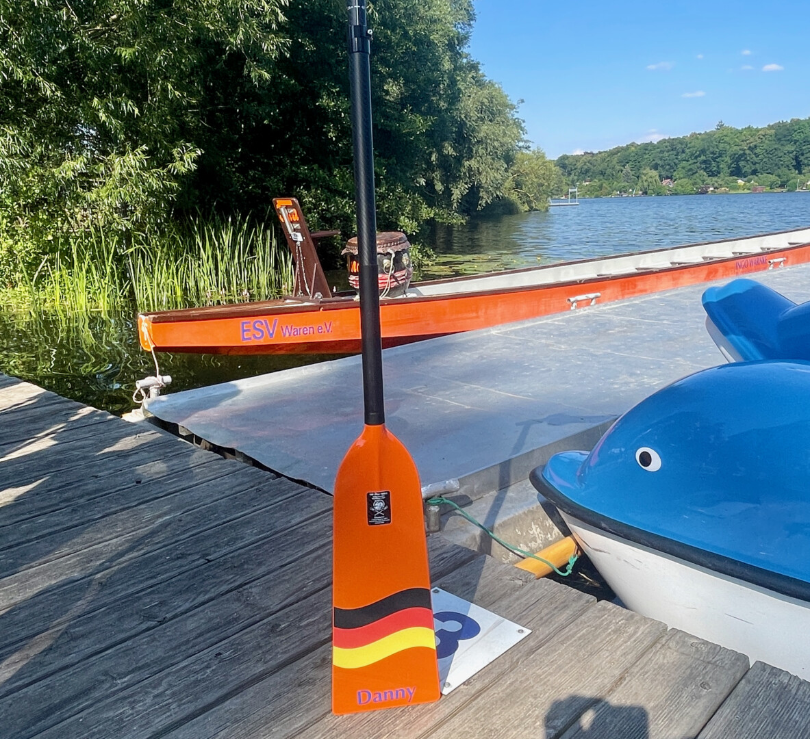 Doch zurück zu den Europameisterschaften und den Müritzern, die dort in der kommenden Woche auf Titel-Jagd gehen. Die 14- bis 17-Jährigen fahren am Dienstag mit dem Bus in Richtung Prag und haben etliche Rennen vor sich. Sechs Nationen kämpfen um die Plätze, auf dem Programm stehen im Mix-Boot und dann noch im Jungen- und Mädchen-Boot mehrere Rennen über 200, 500, 1000 und 2000 Metern. „Das ist kein Spaziergang und kein Urlaub“, so Trainer und ESV-Vorsitzender Ingo Warnke. Gestern gab’s für die Teilnehmer schon mal die Nationalmannschafts-Trikots und die neuen Paddel, die der ESV extra für die EM angeschafft hat – immerhin für rund 300 Euro das Stück. Das geht ins Geld.