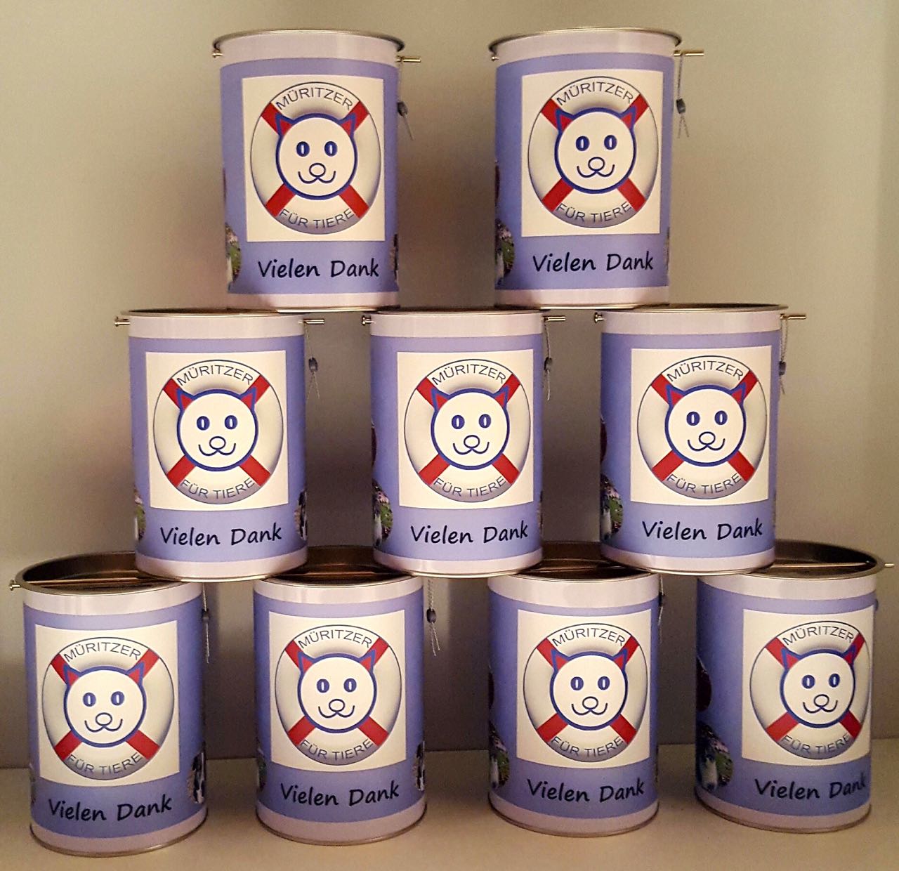 Privates Engagement heißt aber auch, dass wir kein Spendenkonto wie Vereine haben, auf das man einzahlen und eine Spendenquittung erhalten kann. Da jedoch immer mehr Tierfreunde der Müritz-Region unsere Unterstützung und praktische Hilfe für in Not geratene Menschen und Tiere möchten, haben wir nach einer Lösung für finanzielle Unterstützung gesucht. Das Ergebnis: Zuwendungsdosen und eine Katze, die gefüllt werden dürfen.