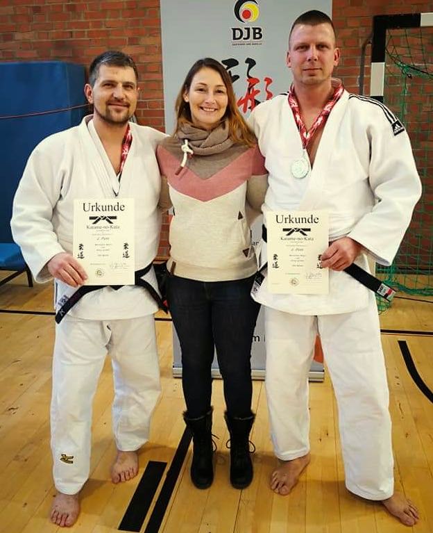Die beiden SKV-Trainer Ronny Goetzke und Max Mayer von der Müritz stellten sich am Wochenende der Prüfungs-Komission mit ihrer Demonstration der Katame-no-Kata („Form der Kontrolle“). Judo-Kata sind festgelegte und namentlich benannte Abfolgen von Techniken, die den Übenden Prinzipien ihrer Ausführung vermitteln sollen. Diese Abläufe werden als Kata – also Formen – bezeichnet.