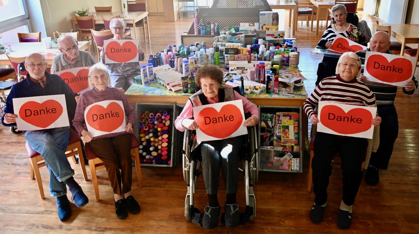 Foto unten: Die Bewohner des Seniorenzentrums Dr. Hans Heydemann in Malchow freuen sich und sagen Danke.