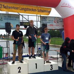 Danach starteten die fünf Warener Schwimmer über die Zwei-Kilometer-Strecke. Dabei erreichte Karsten Hub in einer Zeit von 35:27 Minuten Platz 12 bei den Männern und in seiner Altersklasse Platz 2.