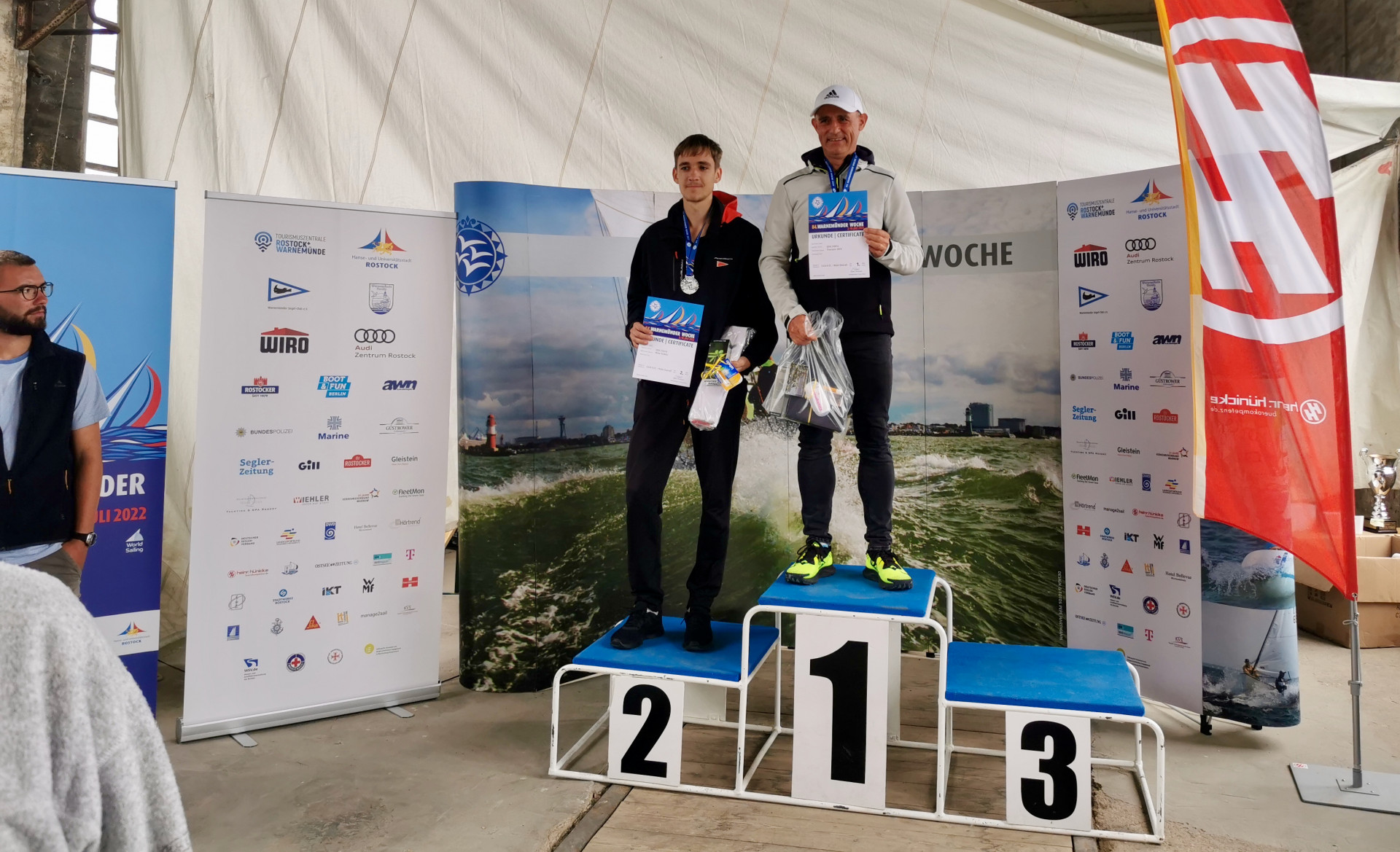 Die Ostsee brodelte zur 84. Warnemünder Woche mit 7 Windstärken aus Nordwest, und die 2,50 m hohen Wellen boten ein wahres Schauspiel für alle Wassersportler. Bei diesen anspruchsvollen Bedingungen wurden der Europa-Cup, als Programmpunkt der Warnemünder Woche unter anderem für die Jollen der drei ILCA Klassen 4, 6 und 7 mit 158 Booten durchgeführt. Mit Thorsten Wyk landete dabei ein Röbeler ganz oben auf dem Treppchen.