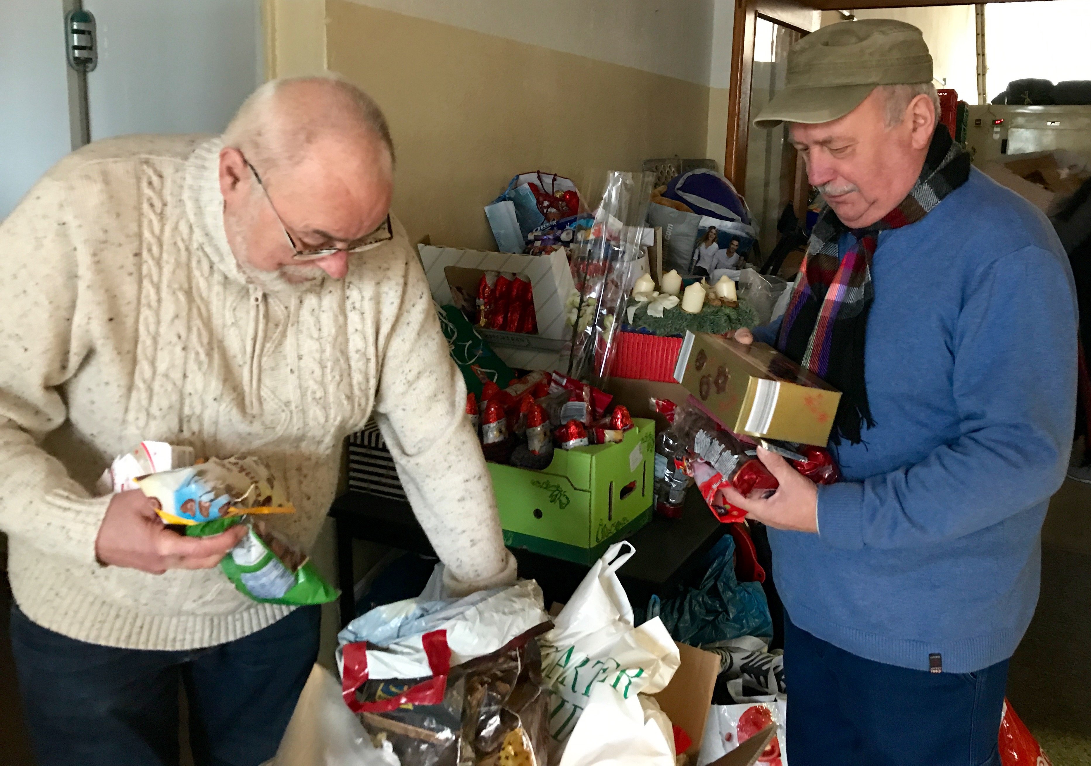 Riesen-Resonanz nach dem Aufruf bei WsM: Günther Hoffmann und Volker Steuer von der Warener Tafel haben gerade alle Hände voll zu tun. Nachdem wir hier berichtet haben, dass die Warener Tafel wie seit 15 Jahren wieder Süßigkeiten, Kleidung und Spielzeug für Mädchen und Jungen in ukrainischen Waisen- und Krankenhäusern sammelt, haben zahlreiche Müritzer gestern und heute jede Menge Tüten und Pakete bei der Tafel abgegeben.