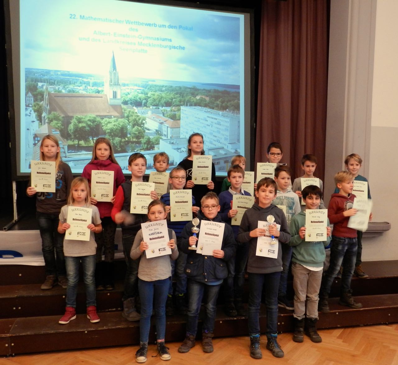 Super-Erfolg für eine Warener Schülerin: Gestern haben 76 Viertklässler aus 29 Grundschulen des Landkreises Mecklenburgische Seenplatte beim 22. Mathematischen Wettbewerb um den Pokal des Albert-Einstein-Gymnasiums gekämpft. Und gewonnen hat ihn mit Frida Jahnke von der Evangelischen Grundschule Waren eine Müritzerin. Herzlichen Glückwunsch Frida und weiter so!