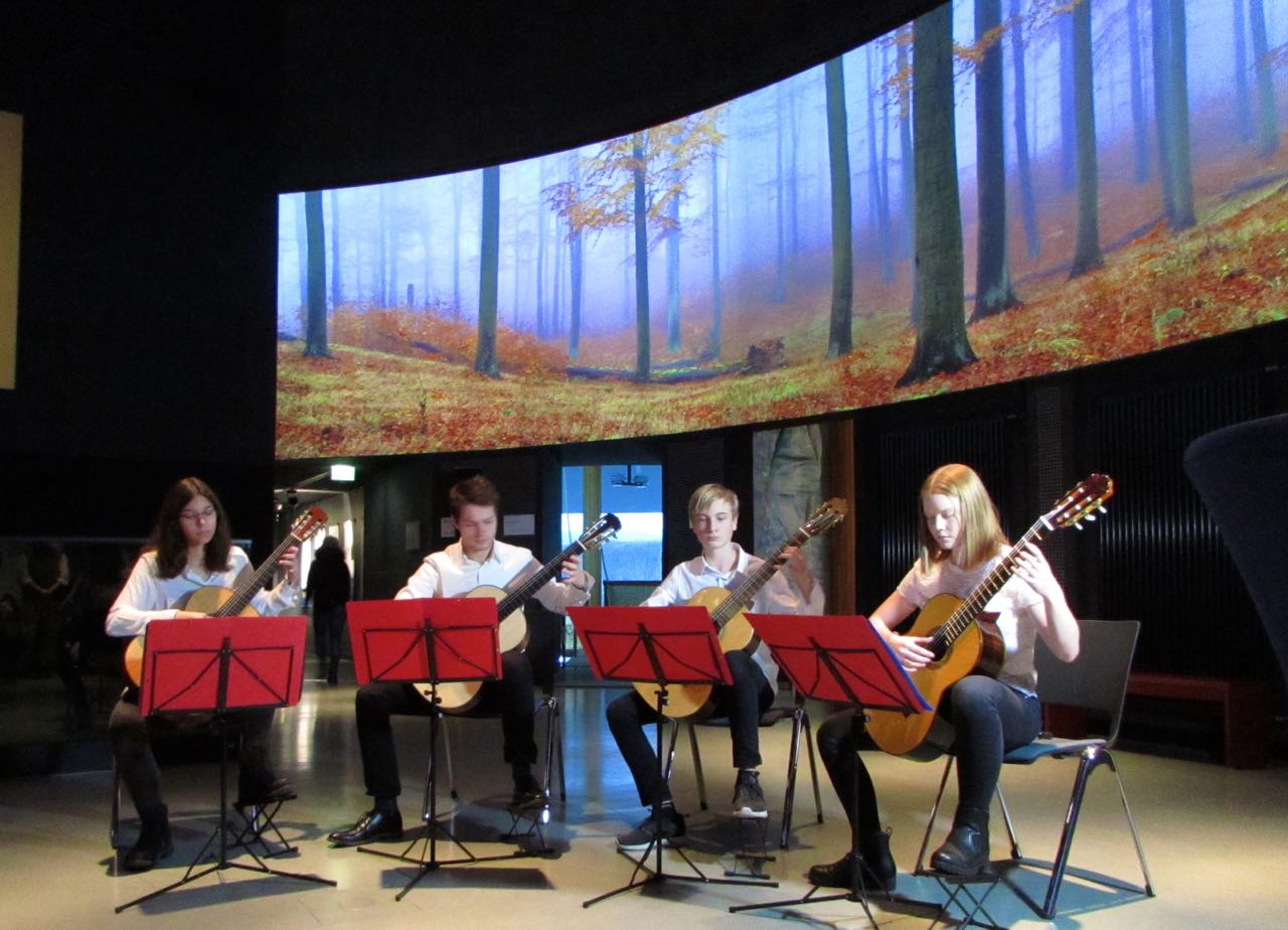 Foto unten: Das Gitarrenquartett der Kreismusikschule Müritz hat beim heutigen Neujahrsempfang begeistert. Morgen stellen sich die Jugendlichen der Jury beim regionalwettbewerb „Jugend musiziert“ in Neustrelitz.