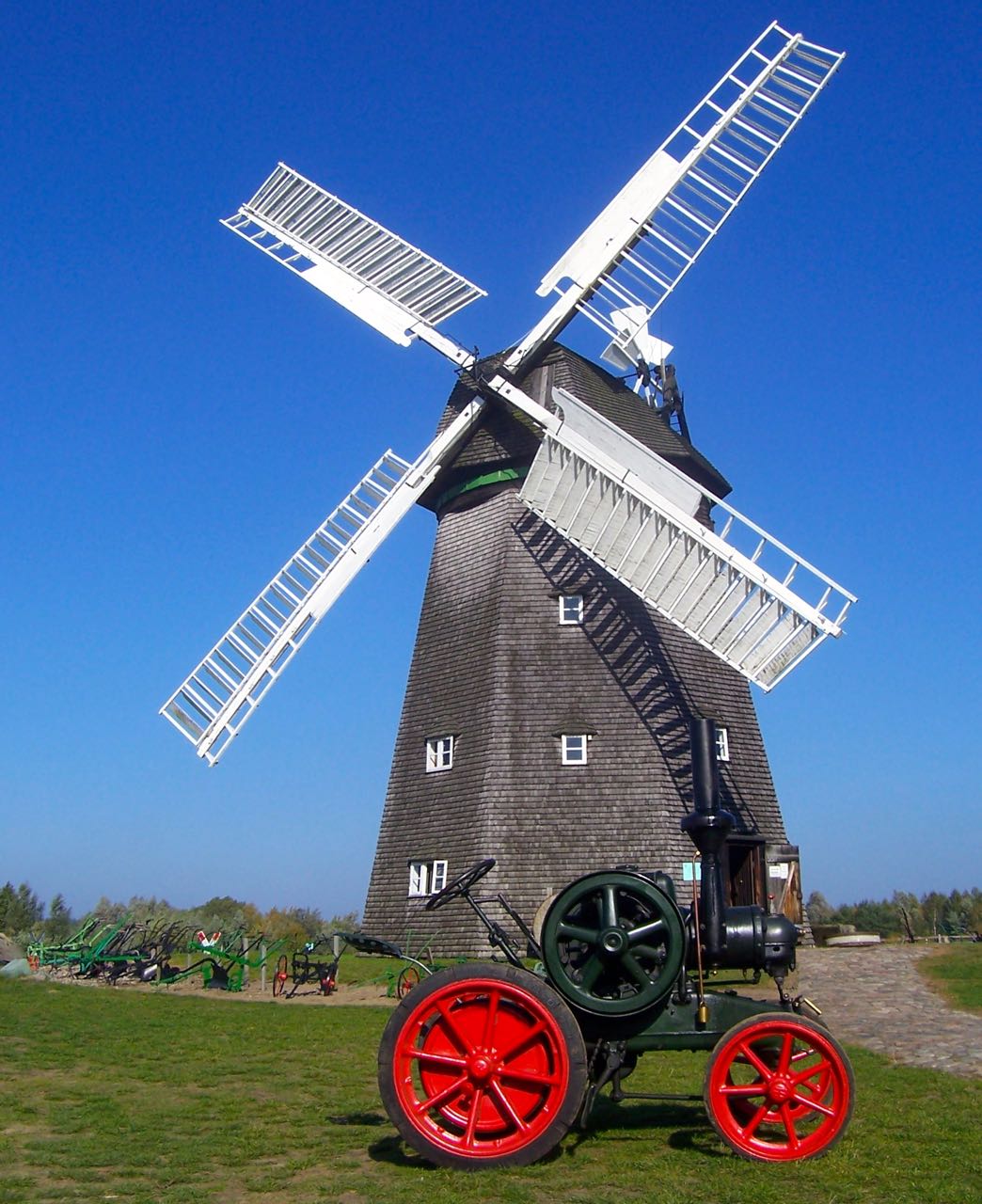 Die Holländerwindmühle stammt ursprünglich aus dem vorpommerschen Jarmen, wo sie 1843 gebaut und 1885 mit Windrose und Jalousieklappen modernisiert wurde. Mit Unterbrechungen war sie bis 1955 in Betrieb. Täglich konnte eine Tonne Getreide vermahlen werden.