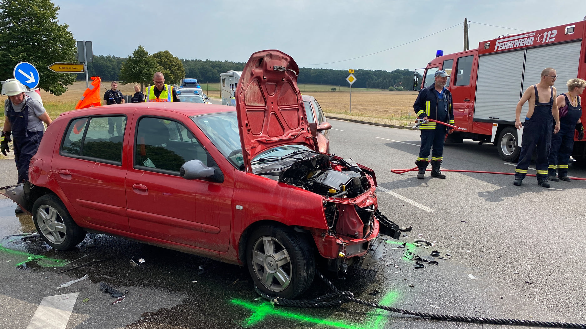 Bei einem Unfall an der Kreuzung B 198 auf Höhe der Ortschaft Darze sind heute Mittag eine 42-jährige Autofahrerin und ihre 12-jährige Tochter schwer verletzt worden.
