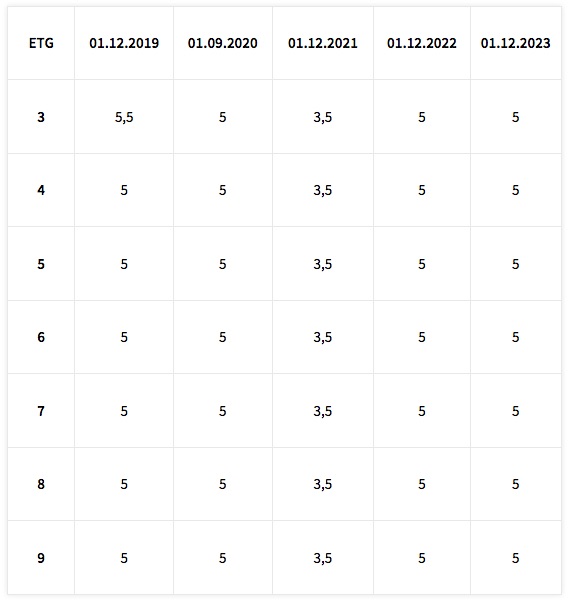 Der Entgelttarifvertrag hat eine Laufzeit vom 01. Dezember 2019 bis zum 31. März 2024.