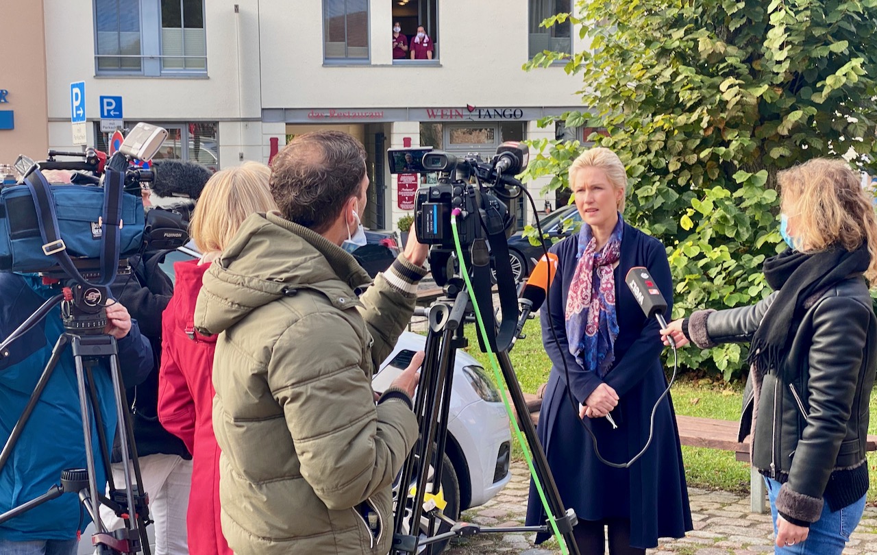 Sie kam, sah – und nahm sich Zeit. MV-Ministerpräsidentin Manuela Schwesig hat heute in Waren das „Wendedenkmal“ eingeweiht, musste so ganz nebenbei aber auch in Sachen Corona Rede und Antwort stehen.