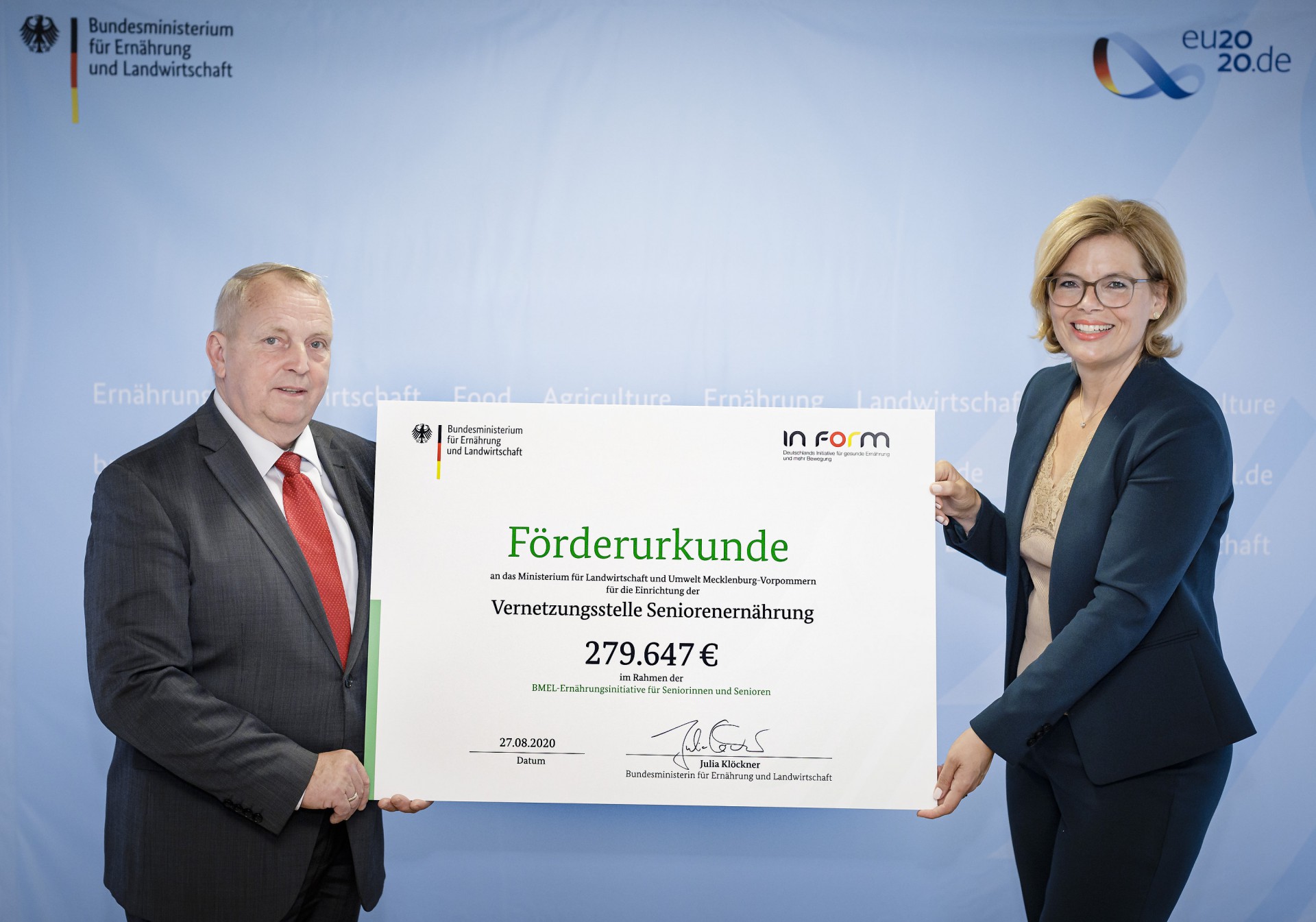 Mecklenburg-Vorpommern ist dabei, eine Lücke im Netzwerk der Ernährungsberatung im Land zu schließen. Nachdem 2009 auf Initiative von Landwirtschaftsminister Till Backhaus die Vernetzungsstelle „Schulverpflegung“ gegründet wurde und ein Jahr später die Vernetzungsstelle „Kitaverpflegung“, wird seit April 2020 in Schwerin die Vernetzungsstelle „Seniorenernährung“ aufgebaut. Sie ist die erste Vernetzungsstelle für den Bereich der Seniorenernährung in den neuen Bundesländern und bei der Deutschen Gesellschaft für Ernährung (DGE) angesiedelt. Backhaus konnte gestern in Berlin einen Zuwendungsbescheid entgegennehmen, mit dem das Bundesministerium für Ernährung und Landwirtschaft diese Gründungsphase mit rund 280.000 Euro bis 2023 unterstützt.