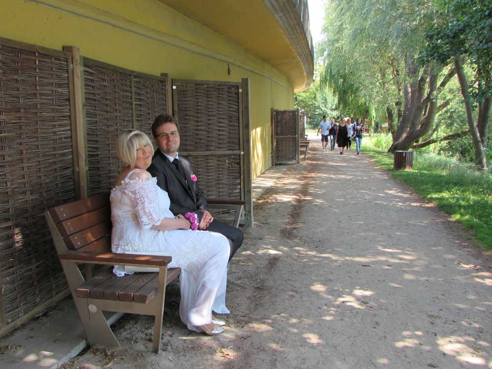 Freitag der 13. – ohne Sorgen, ganz glücklich und beseelt genießt ein Hochzeitspaar die Ruhe im Garten des Müritzeums. Anja und Sascha Hofmann haben sich heute mit Absicht am 13. das Ja-Wort gegeben, denn genau vor vier Jahren gab es den Heiratsantrag.