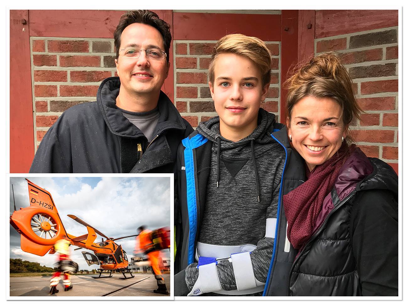 Inzwischen kamen auch die Eltern Silke und Matthias Stock an die Unfallstelle. „Es war ein Schock, unser Kind lag auf der Straße und wir konnten ihm nicht helfen. Wir erinnern uns nur sehr ungern daran. Viele Ersthelfer waren bereits vor Ort, die sich um ihn kümmerten. Dafür sind wir so dankbar“, sagte die Mutter. Zwei Notärzte versorgten Iven im Rettungswagen, während die Eltern auf der Straße um ihren Sohn bangten. Die Notfallmediziner verabreichten Medikamente und legten Infusionen an, stellten so die Transportfähigkeit des Jungen her. Kurz darauf wurde entschieden, Iven mit dem Rettungshubschrauber in die Klinik zu fliegen.