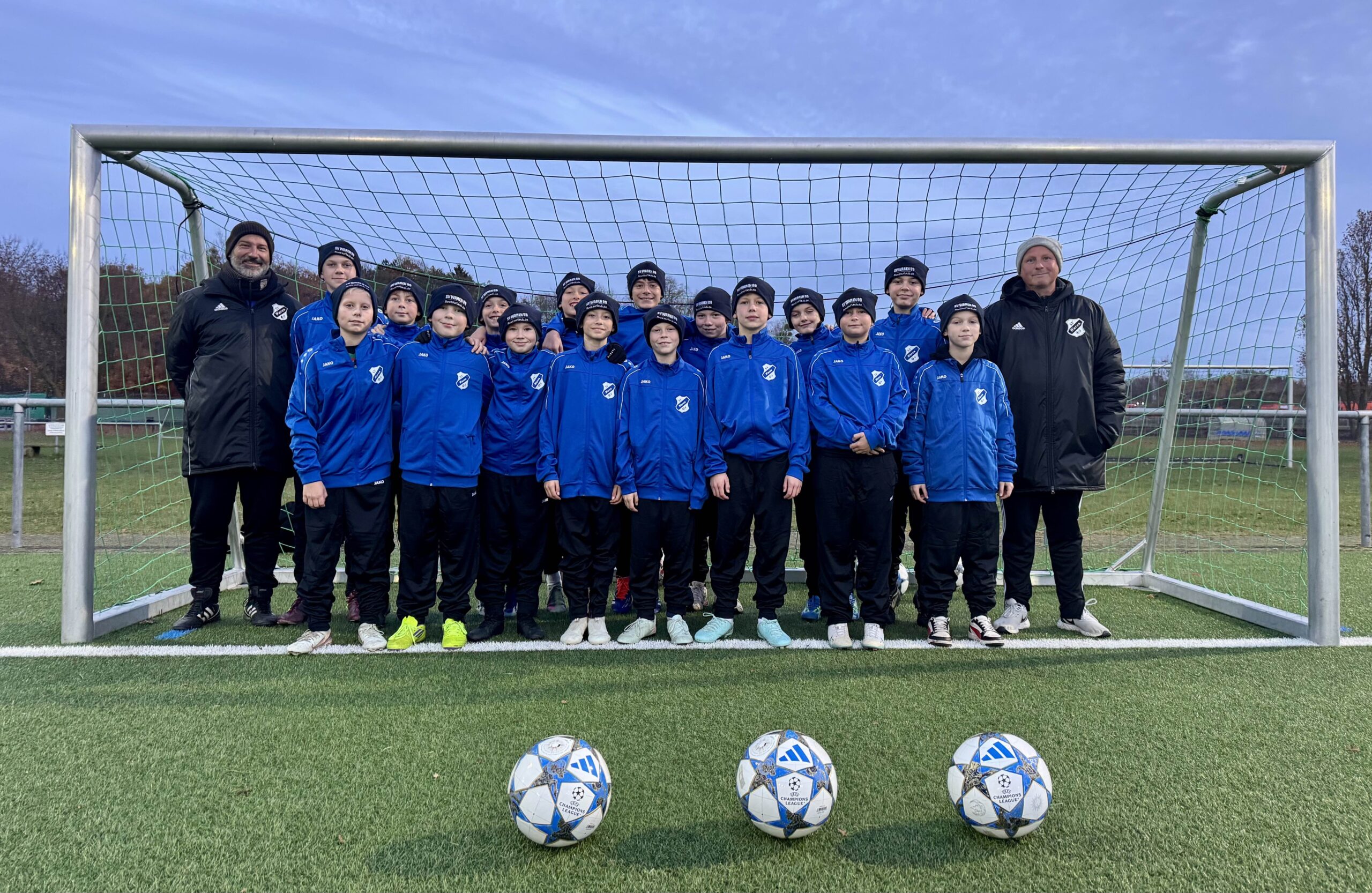 Die D II Mannschaft des SV Waren 09 startet warm in die Winterzeit. Dank der Firma Bootsurlaub.de freuen sich die Nachwuchssportler über neue Trainingsanzüge und passende Wintermützen. Die Übergabe sorgte in der beginnenden Vorweihnachtszeit für strahlende Kinderaugen und viel Freude auf dem Trainingsplatz. Mit der Unterstützung will Bootsurlaub.de ein Zeichen für lokalen Sport setzen und die Gemeinschaft in der Region stärken.