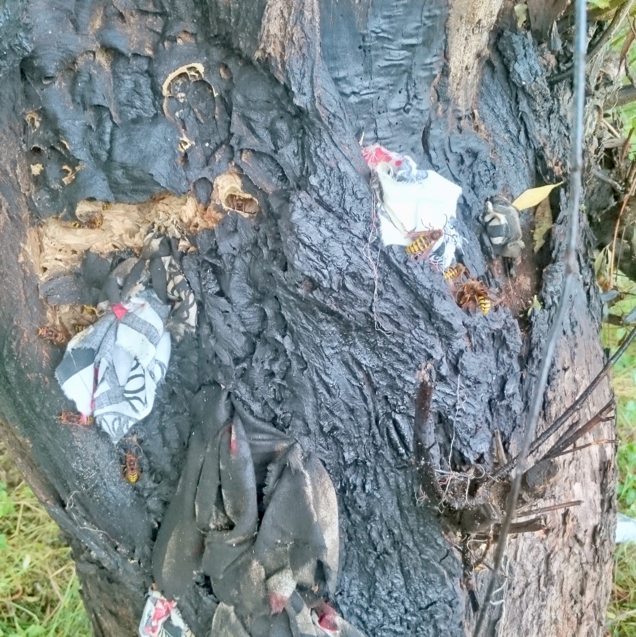 Hunderte der Tiere starben einen qualvollen Tod, und auch der Baum, in dem das Nest sich befindet nahm großen Schaden.