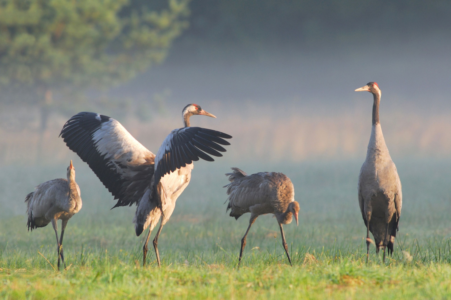 Die ersten Kraniche sind schon in Mecklenburg-Vorpommern eingetroffen. Bis Ende Oktober werden zwischen Ostseeküste und Seenplatte Zehntausende Kraniche aus dem skandinavischen und osteuropäischen Raum rasten, bevor die sogenannten „Tänzer des Nordens“ in ihre Winterquartiere in Frankreich und Spanien weiterziehen. Die Region „Darß-Zingster Boddenkette und Rügen“ mit ihren flachen Gewässern zählt dabei für die majestätischen Großvögel zu den bedeutendsten Rastplätzen in ganz Europa. Dazu Dr. Günter Nowald, Leiter des NABU-Kranichzentrums in Groß Mohrdorf bei Stralsund: „Allein in der Region ‚Darß-Zingster Boddenkette und Rügen‘ halten sich während der Hauptzeit der Kranichsaison rund 50.000 bis 60.000 der Großvögel auf. Im letzten Jahr waren es insgesamt 135.000 in ganz Mecklenburg-Vorpommern. Der Großteil der Vögel, die hier ihre Kräfte für den Weiterflug sammeln, wird im ersten Oktoberdrittel erwartet. Wie viele Kraniche insgesamt in diesem Jahr Halt in Mecklenburg-Vorpommern machen werden, hängt vor allem von der Wetterlage ab.“