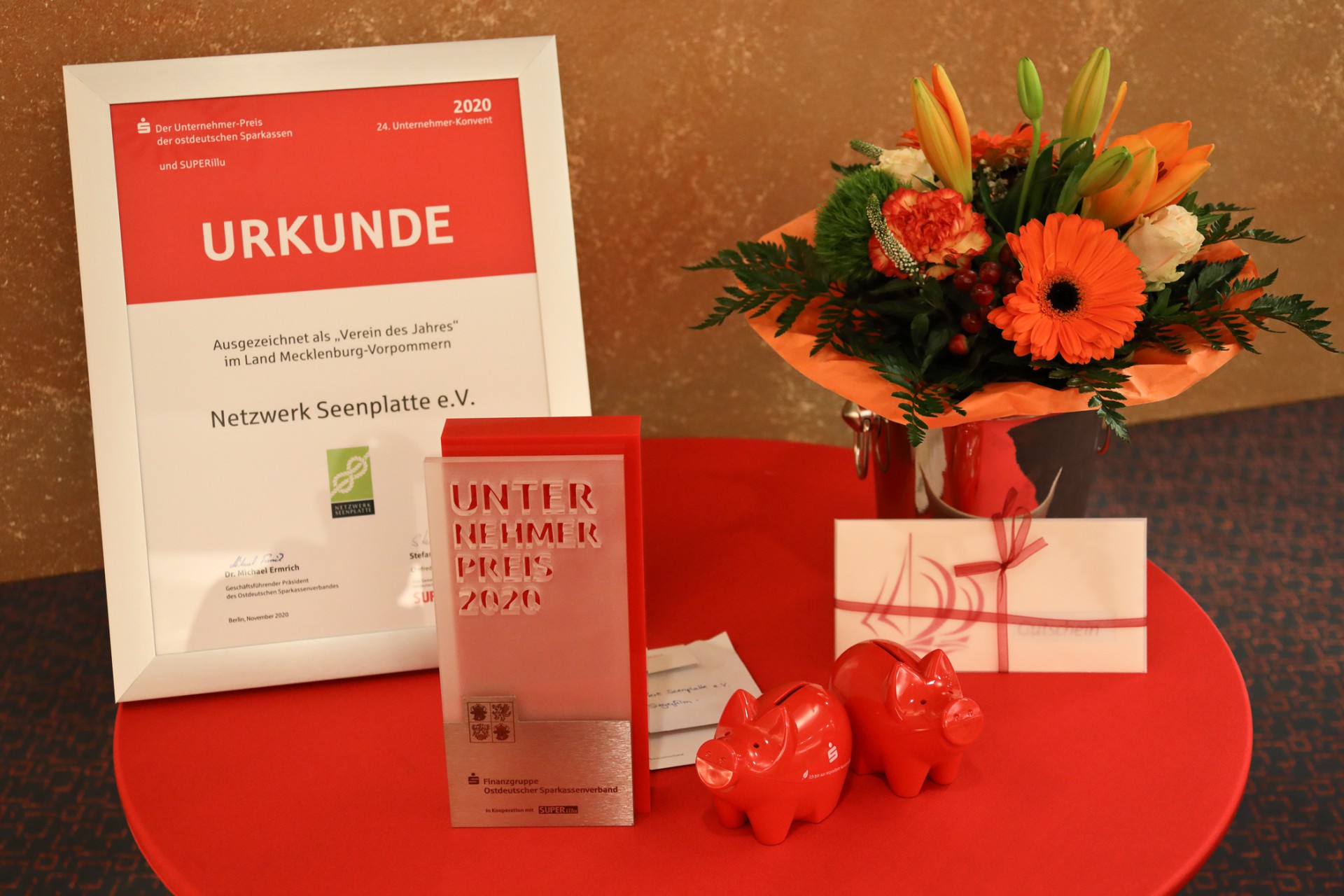 Wie bereits auf „Wir sind Müritzer“ berichtet, ist der Verein Netzwerk Seenplatte e.V. aus Malchow vom Ostdeutschen Sparkassenverband (OSV) als „Verein des Jahres“ in Mecklenburg-Vorpommern ausgezeichnet worden. Jetzt gab es die Preisübergabe. „Wir sind sehr stolz, dass der Sieger in der Kategorie „Verein des Jahres“ in Mecklenburg-Vorpommern aus unserem Geschäftsgebiet kommt“, freute sich die Vorstandsvorsitzende der Müritz-Sparkasse, Andrea Perlick. „Der Verein Netzwerk Seenplatte e. V. ist DAS Netzwerk für Gründer, Unternehmer und Kreative hier bei uns an der Seenplatte. In diesen außergewöhnlichen Zeiten ist es den Akteuren des Vereins mit viel Herzblut, Engagement und Ideenreichtum gelungen, bestehende Verbindungen zu vertiefen, neue Verknüpfungen aufzubauen und andere Wege der Interaktion zu beschreiten.“