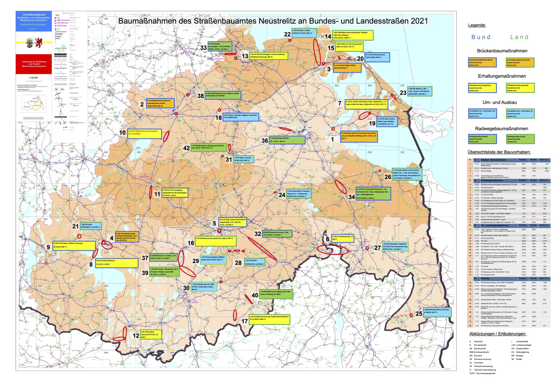 Eine weitere Baustelle ist im Sommer zwischen Buschhof und Starsow südlich der Müritz geplant. Dort soll von Mai bis Juli die Straße für 1,7 Millionen Euro erneuert werden.