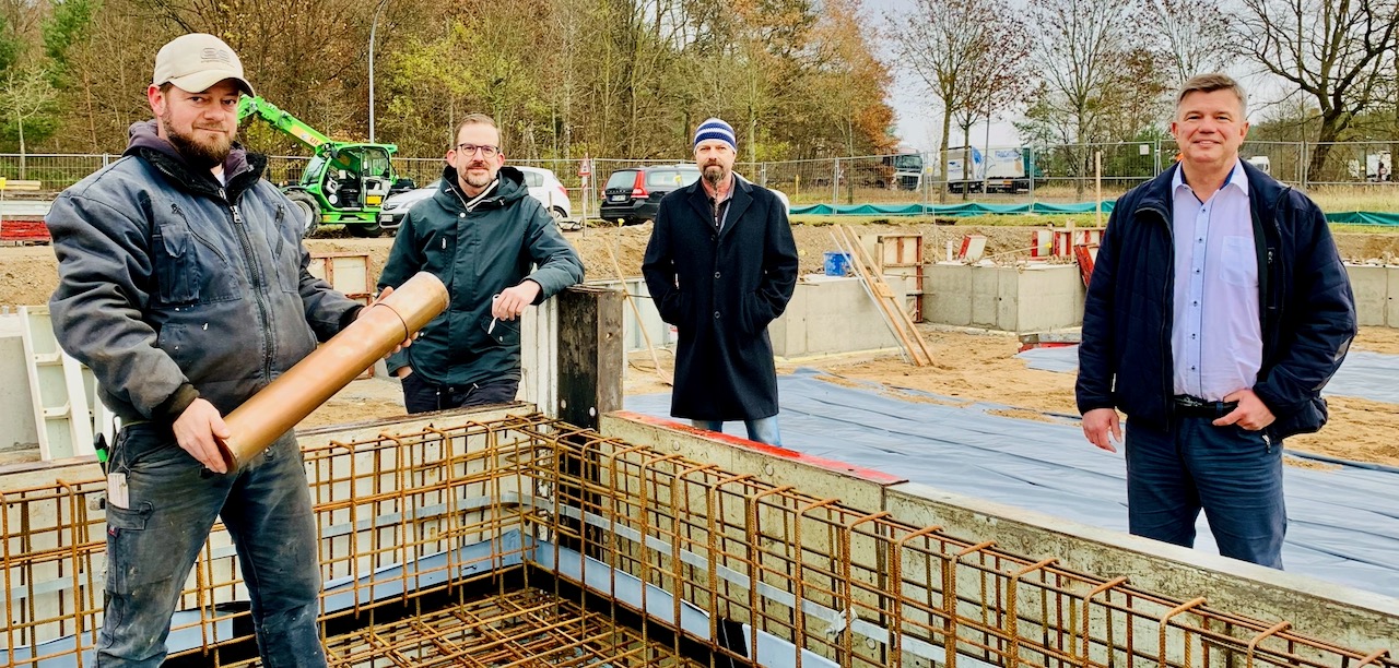 Für den Neubau der Theaterwerkstatt der Theater- und Orchester GmbH Neubrandenburg / Neustrelitz (TOG) am Bürgerseeweg in Neustrelitz ist gestern der Grundstein gelegt worden. Aufgrund der aktuellen Situation gab es keine offizielle, feierliche Zeremonie mit geladenen Gästen, aber es wurde trotzdem ganz traditionell eine Zeitkapsel am Bau einbetoniert. Dies übernahmen Intendant Sven Müller, der kaufmännische Geschäftsführer Malte Bähr und Werkstattleiter Dirk Biallas gemeinsam mit Karsten Lüdtke von der Hoch + Tiefbau Neubrandenburg GmbH.