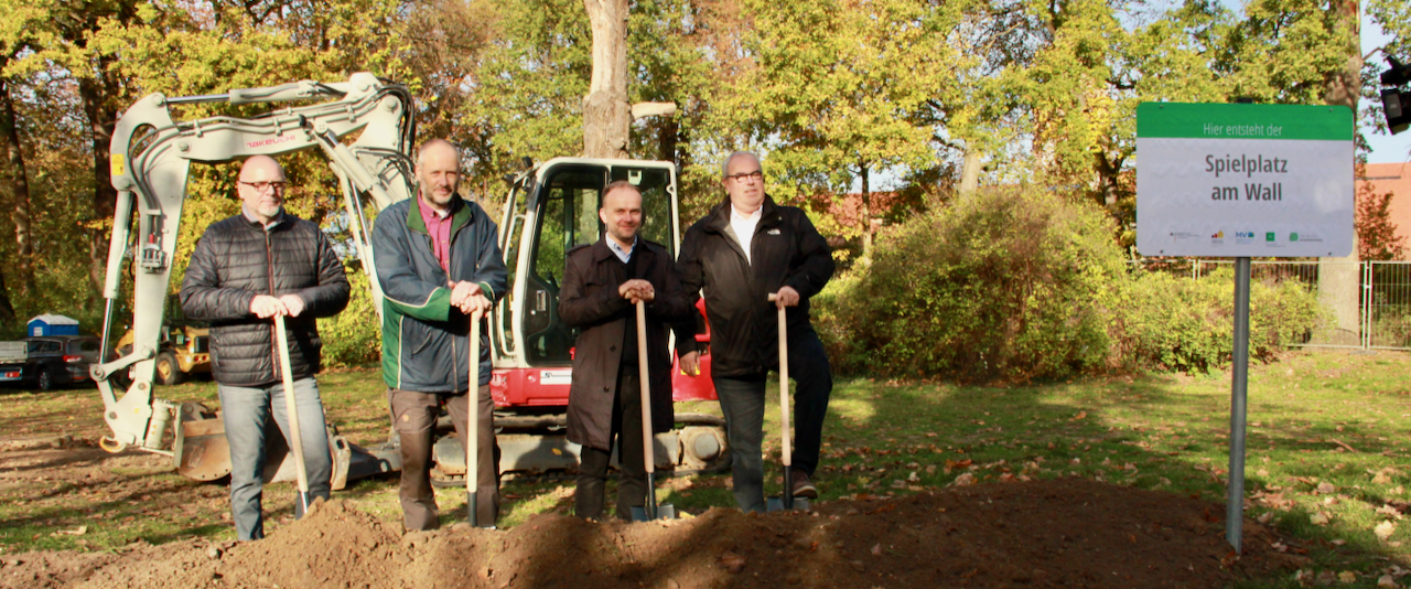 Bereits im Sommer 2023 sollen Kinder auf der großen Freifläche westlich des Stargarder Tors auf einem neuen Spielplatz toben können – dafür ist gestern mit dem ersten Spatenstich der öffentliche Baubeginn vollzogen. Die neue Anlage wird so gestaltet, dass Kinder, aber auch Jugendliche an dieser Stelle zahlreiche Möglichkeiten zum Spielen, zur Bewegung und zum Treffen finden. Darüber hinaus sollen auch Ruhepunkte für Erholungssuchende und bequeme Sitzmöglichkeiten geschaffen werden.