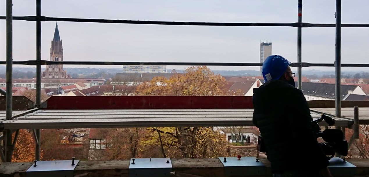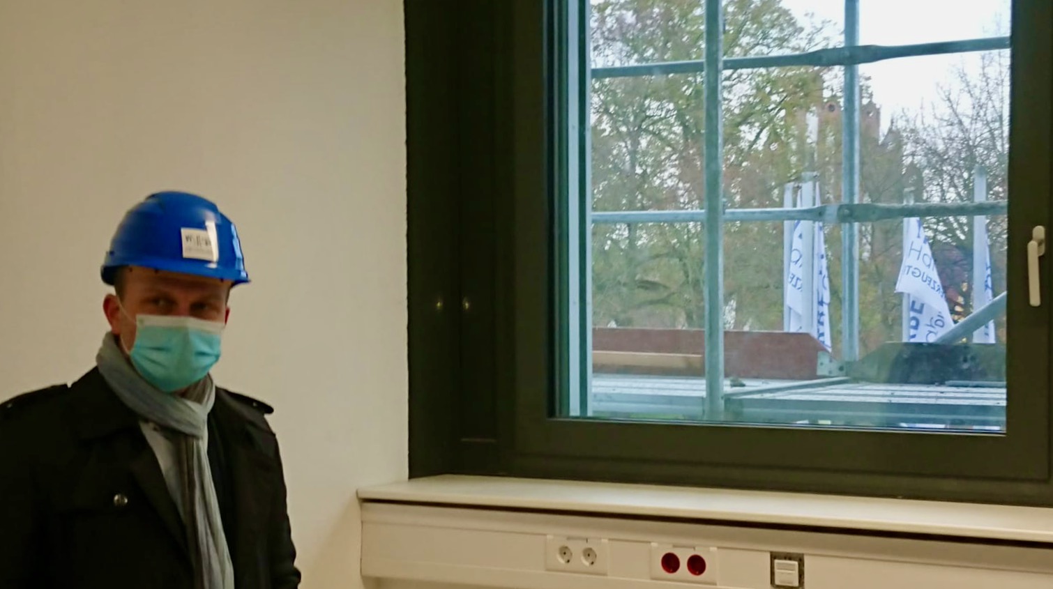 Die neuen „Verwaltungs“-Farben sind vor allem weiß, etwas rot und etwas grau: Aus diesem Spektrum und sehr viel schalldichtem Glas für je etwa 220 Fenster an beiden Seiten setzt sich die neue Fassade für das sanierte Rathaus in Neubrandenburg (WsM berichtete) zusammen. Ein kleines Beispiel haben Bauarbeiter schon anmontiert, wie Oberbürgermeister Silvio Witt jetzt bei einer Baustellenbegehung erklärte. Insgesamt liege die millionenschwere Sanierung fast im Zeitplan, Anfang 2022 sollen die Mitarbeiter einziehen. In den Komplex am Friedrich-Engels-Ring soll ja praxishalber auch ein Teil der Kreisverwaltung der Mecklenburgischen Seenplatte seinen Sitz haben.
