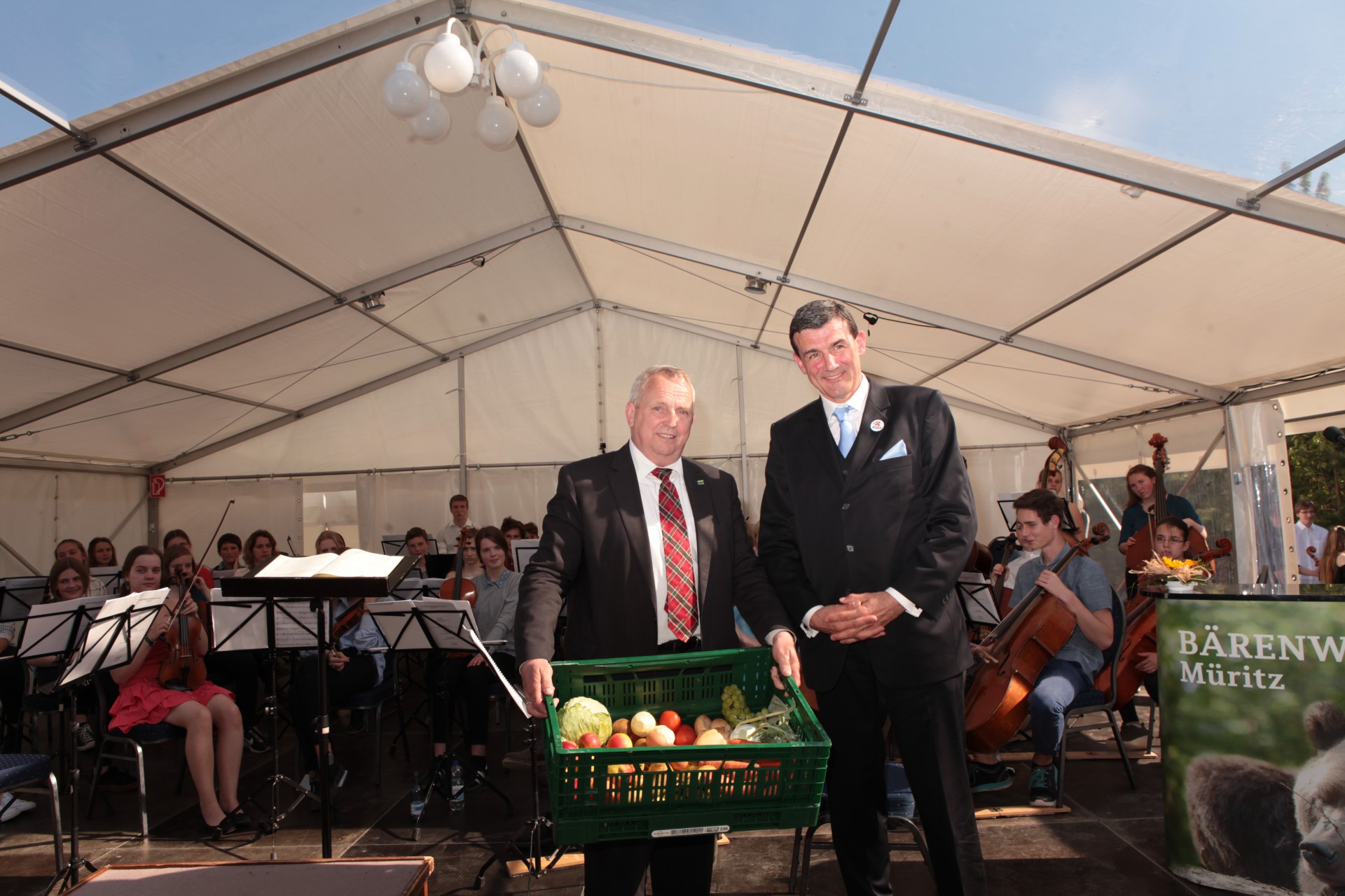 Das Schutzzentrum wurde auf den Tag genau vor zehn Jahren eingeweiht. Landwirtschaftsminister Till Backhaus schnitt gestern gemeinsam mit Landrat Heiko Kärger, Ioana Dungler, Leiterin der Wildtierabteilung von Vier Pfoten, Heli Dungler, Gründer und Präsident von Vier Pfoten, Winnie Rösner, Betriebsleiterin des Bärenwald Müritz, Carsten Hertwig, Geschäftsführer des Bärenwald Müritz vor ca. 100 geladenen Gästen das Eröffnungsband durch.