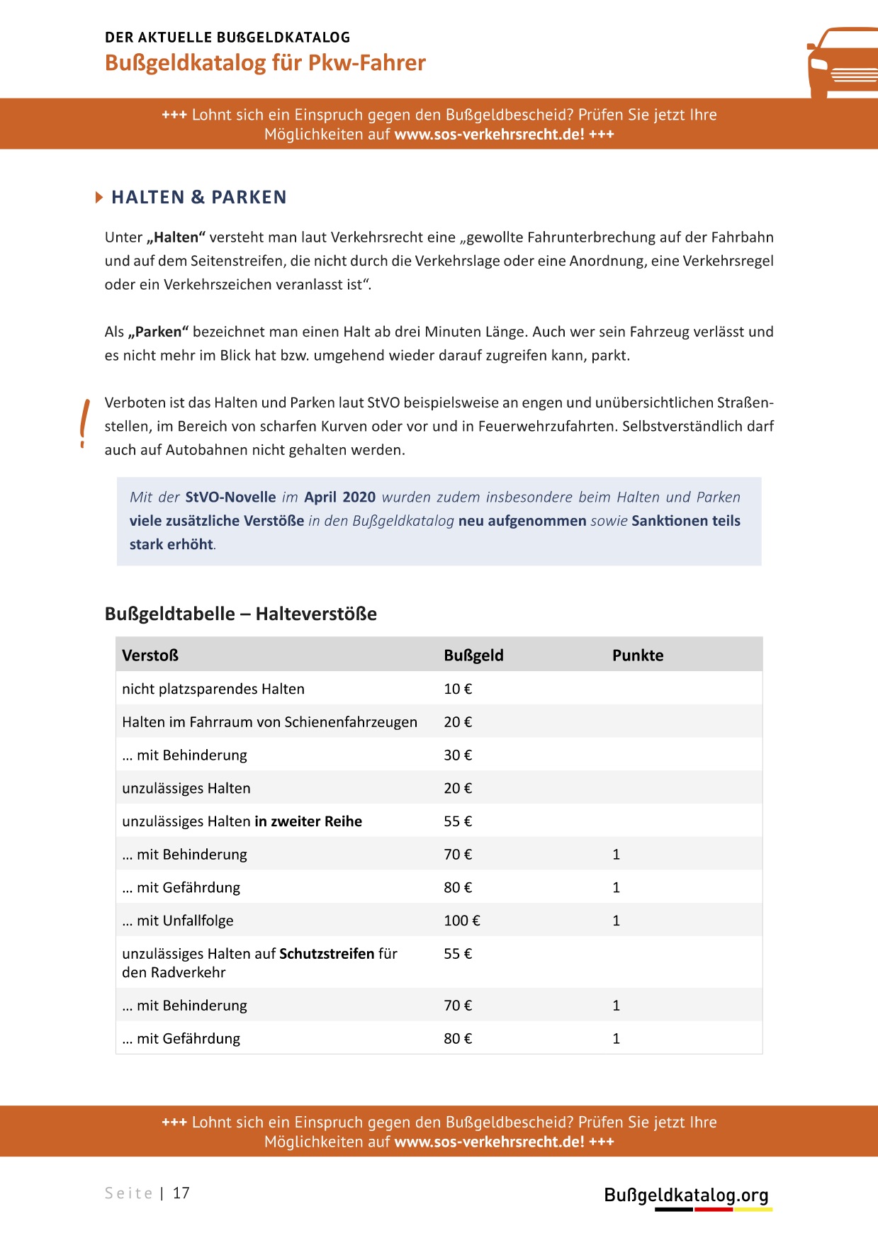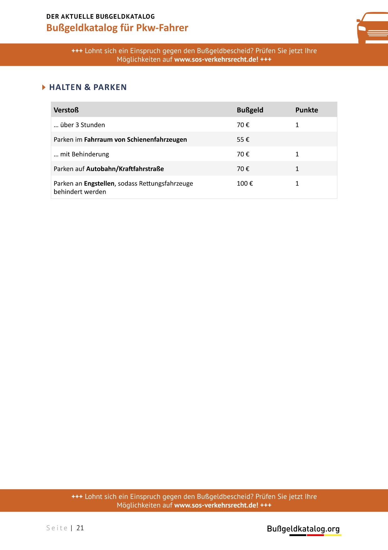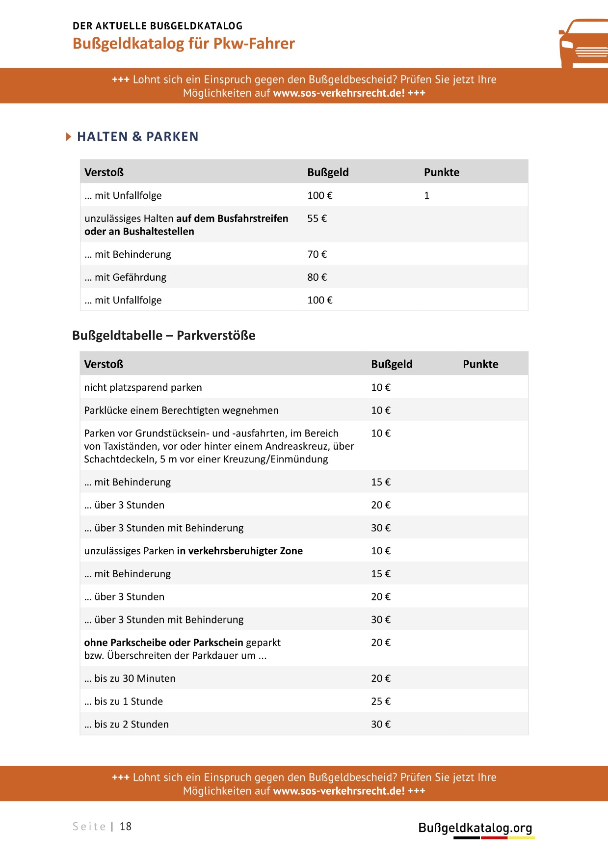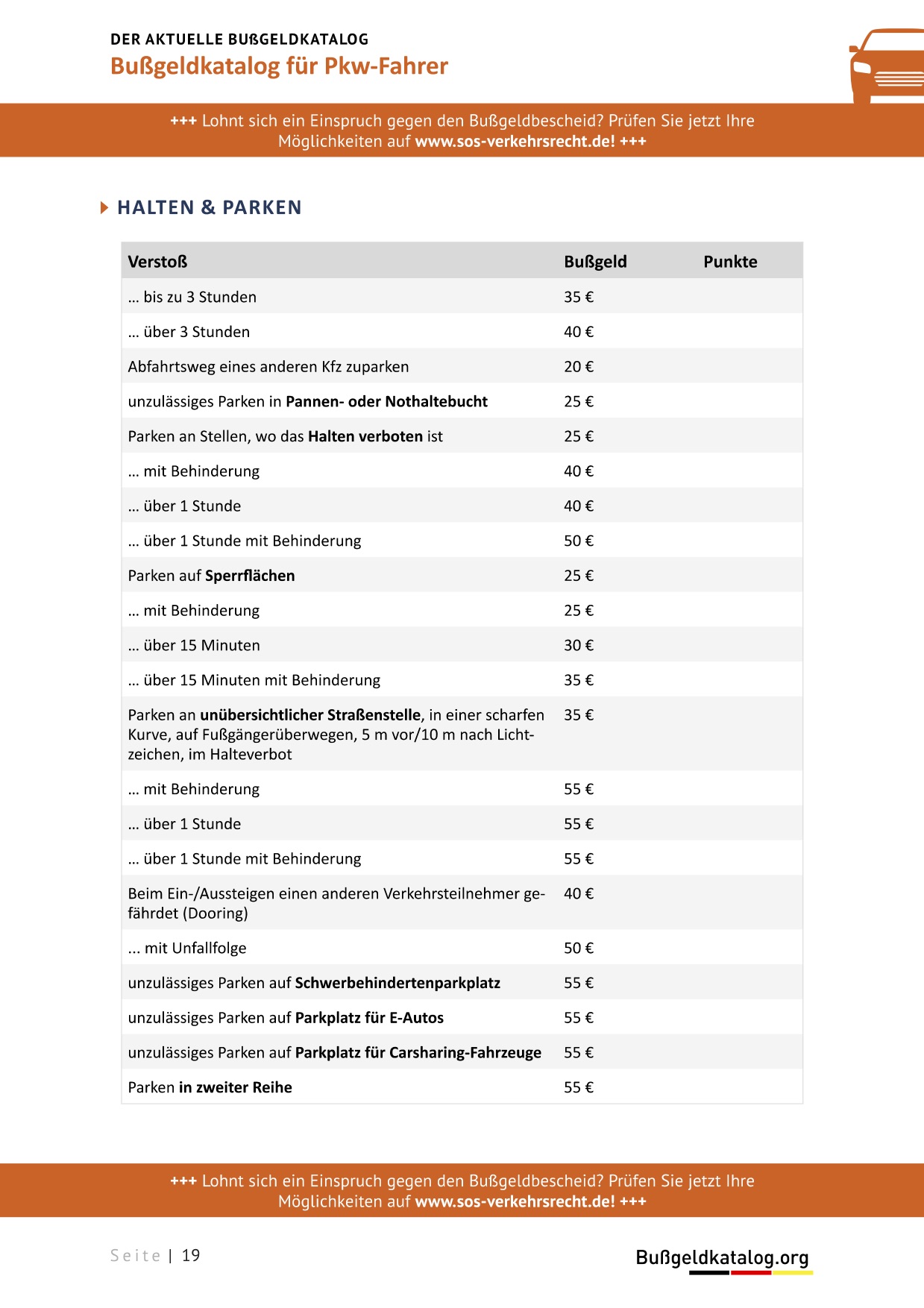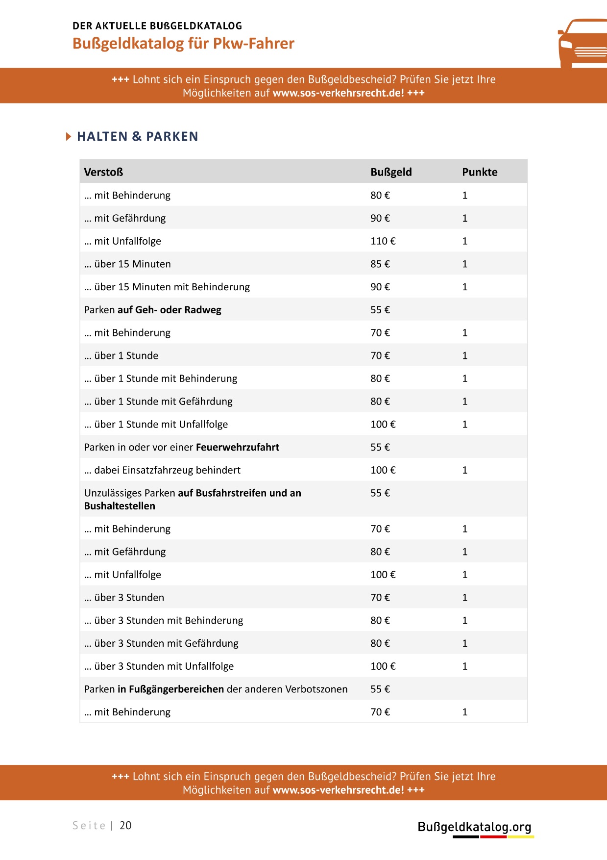 Wir haben hier mal die neuen Bußgelder in Sachen Parken aufgelistet: