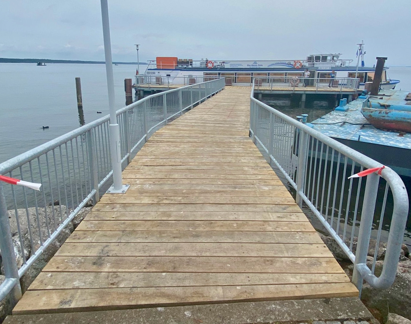 Die Gemeinde entschied sich für eine Stahlkonstruktion als Unterbau mit Stahlgeländer. Der alter Unterbau aus Holz war in die Jahre gekommen. „Wir gehen, davon aus, dass der Anleger nun bedeutend länger als 20 Jahre hält. Der Belag ist übrigens aus heimischer Mecklenburgischer Stieleiche“, berichtete Thomas Beckmann.