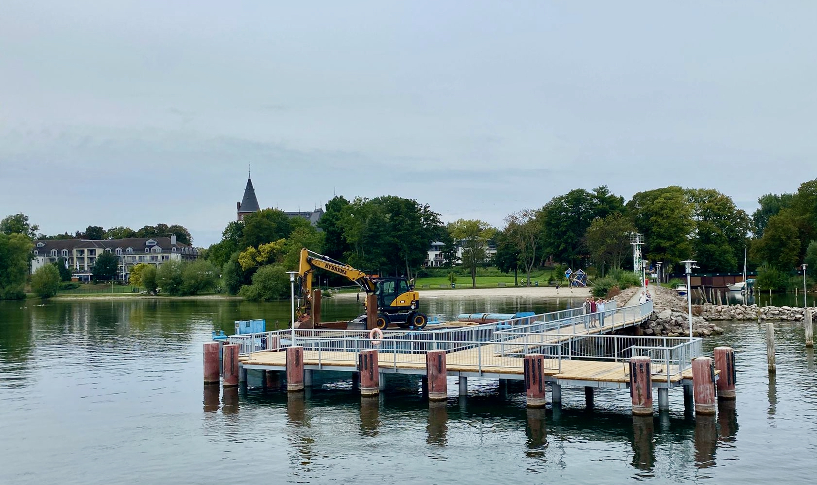 Auch in Malchow geht es, die Anlegestelle an der Klinik ist fertig. Es gibt noch mehr Orte, die diesbezüglich gehandelt haben. Die Brücken sehen ordentlich aus und bestehen nicht aus häßlichen Beton wie die Kietzbrücke. Von planen und diskutieren wird nichts. Wie geht’s denn mit der Mole weiter und mit den anderen Plänen w.z.B. Parkhaus?