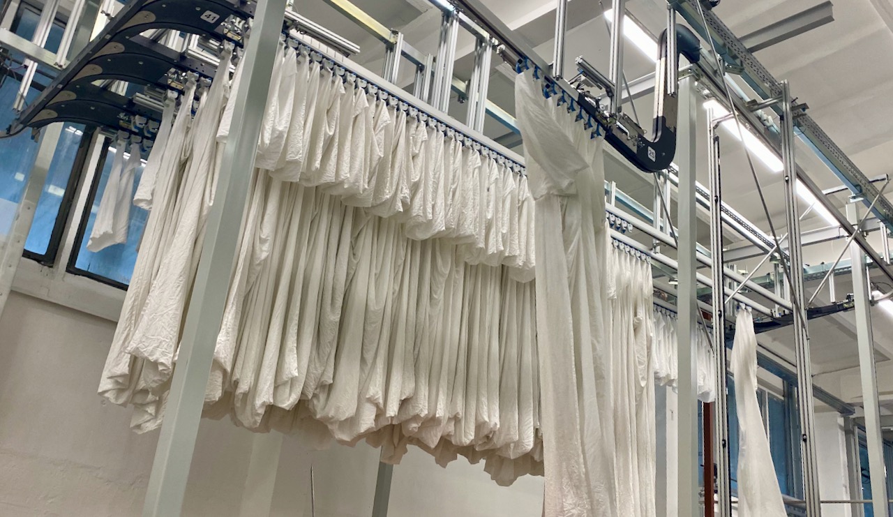 Zu den Kunden der „Warener Waschfee“ zählen vor allem Kliniken, Hotels und Pflegeeinrichtungen, und zwar in einem Gebiet von der Ostsee bis nach Berlin. Rund 12 Tonnen Handtücher, Bettzeug, Pflegeunterlagen und ähnliches werden in den beiden Produktionshallen am Tag „blütenrein“ gewaschen, durch die Umrüstung gibt’s noch freie Kapazitäten. Zuvor mussten Stefan Müller und seine Leute sogar Kunden wegschicken, weil einfach nichts mehr ging.