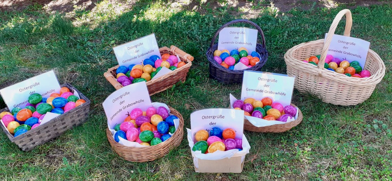 Und so hat er jetzt sieben Körbchen mit bunten Eiern gepackt. Die verteilt er an die Gemeindevertreter in den Ortsteilen und die wiederum platzieren die Körbe an der Straße. So kann sich jeder, der möchte, bedienen. Wie heißt es doch so schön: Kleine Geschenke erhalten die Freundschaft, auch in Krisen-Zeiten oder besser – erst Recht in Krisen-Zeiten.