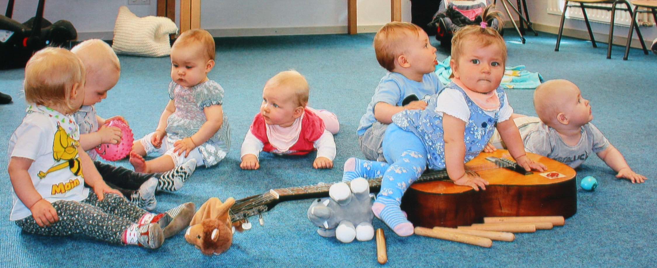 Der Kurs „Mit Musik durchs erste Lebensjahr“ will junge Eltern mit ihrem Kleinstkind einladen, zu singen, sich mit ihrem Kind zu Musik zu bewegen und im melodischen oder rhythmischen Spiel das Kind Körperwahrnehmungen machen zu lassen.