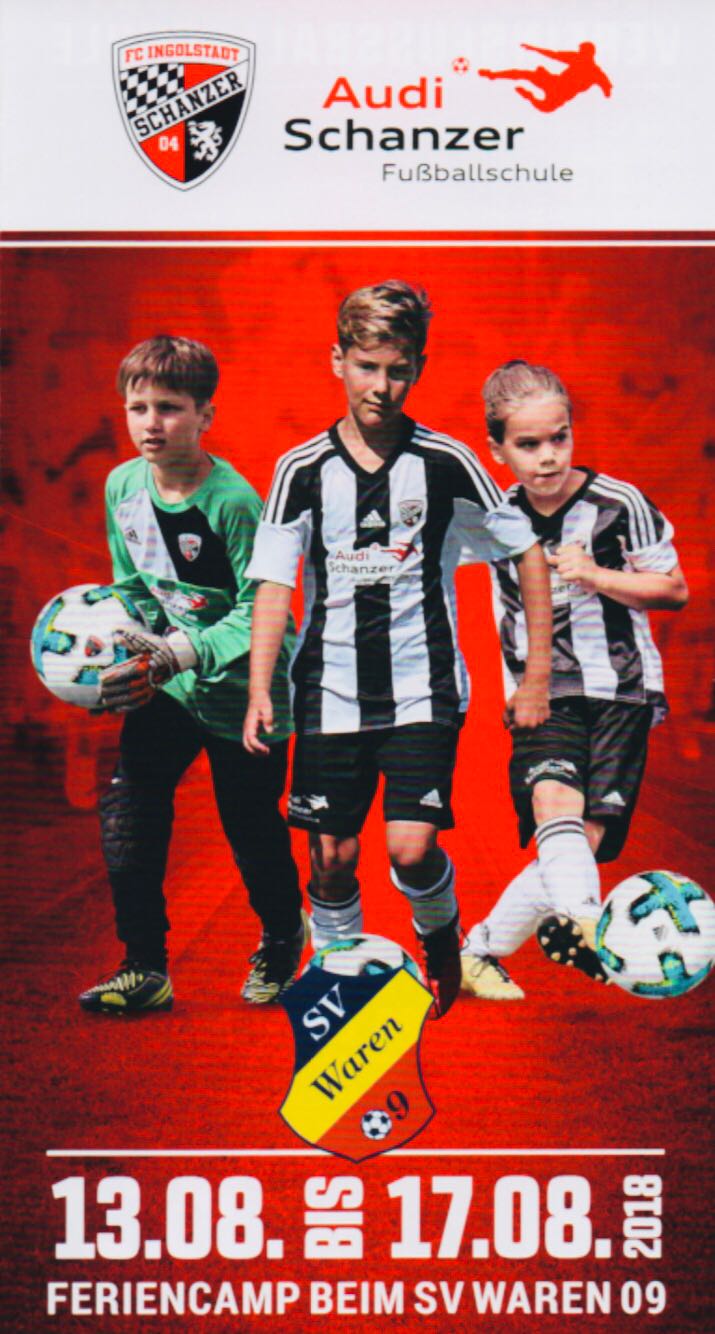 Schnell anmelden! Beim beliebten Feriencamp der Audi Schanzer Fußballschule vom 13. bis 17. August in Waren sind noch einige Plätze frei. Willkommen sind alle Kinder – Mädchen und Jungen – der Jahrgänge 2005 bis 2012 – egal ob Anfänger, Vereinsspieler oder Top-Talent.
