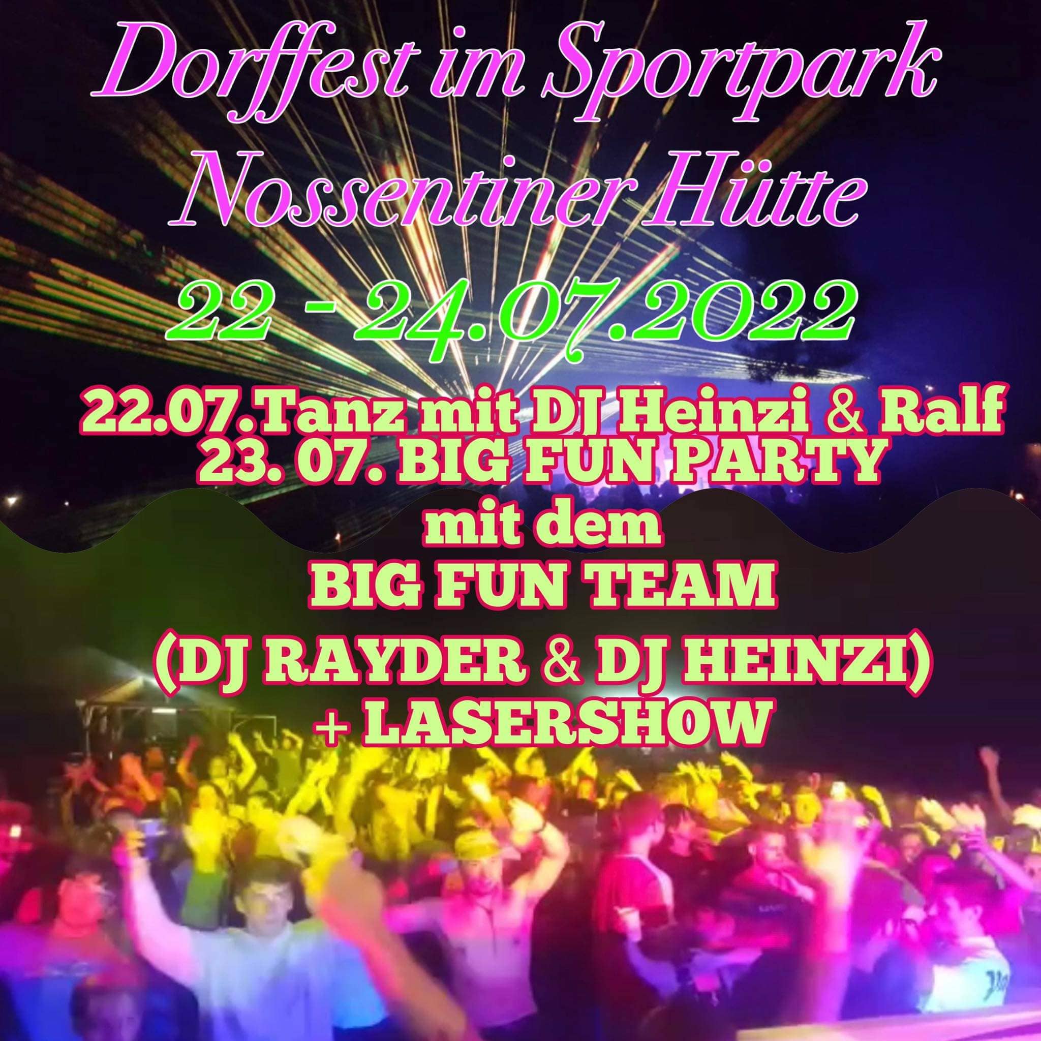 Nossentiner Hütte feiert ab heute Abend ein zünftiges Dorffest, und zwar gleich bis einschließlich Sonntag. Nach einem Fußballspiel wird schon heute Abend im Sportpark getanzt, morgen geht’s dann ab 14 Uhr mit einem Kinderprogramm weiter. Abends legt unter anderem DJ Rayder alias Ralf Weber auf. Gemeinsam mit seinem Big-Fun-Team hat er sich unter anderem durch zahlreiche Partys im „Schuppen“ sowie große Events in der Müritz-Region einen Namen gemacht. Am Sonntag steht dann ab 10 Uhr ein Frühschoppen mit der Feuerwehr auf dem Programm.