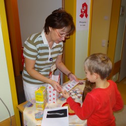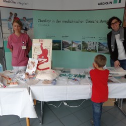 Interessant sowohl die kleinen als auch für große Besucher, die Informationen über das Desinfizieren der Hände. Die Laien haben hier eindrucksvoll vor Augen geführt bekommen, wie gründlich das medizinische Personal die Hände waschen muss, damit sie wirklich keine Bakterien mehr übertragen. So konnten sich Interessierte die Hände waschen und anschließend unter dem Infrarotlicht sehen, ob die Hände tatsächlich „clean“ waren. Mit für manche sehr überraschendem Ergebnis, denn bei fast allen Händen zeigte sich unter dem speziellen Licht noch jede Menge „Schmutz“.