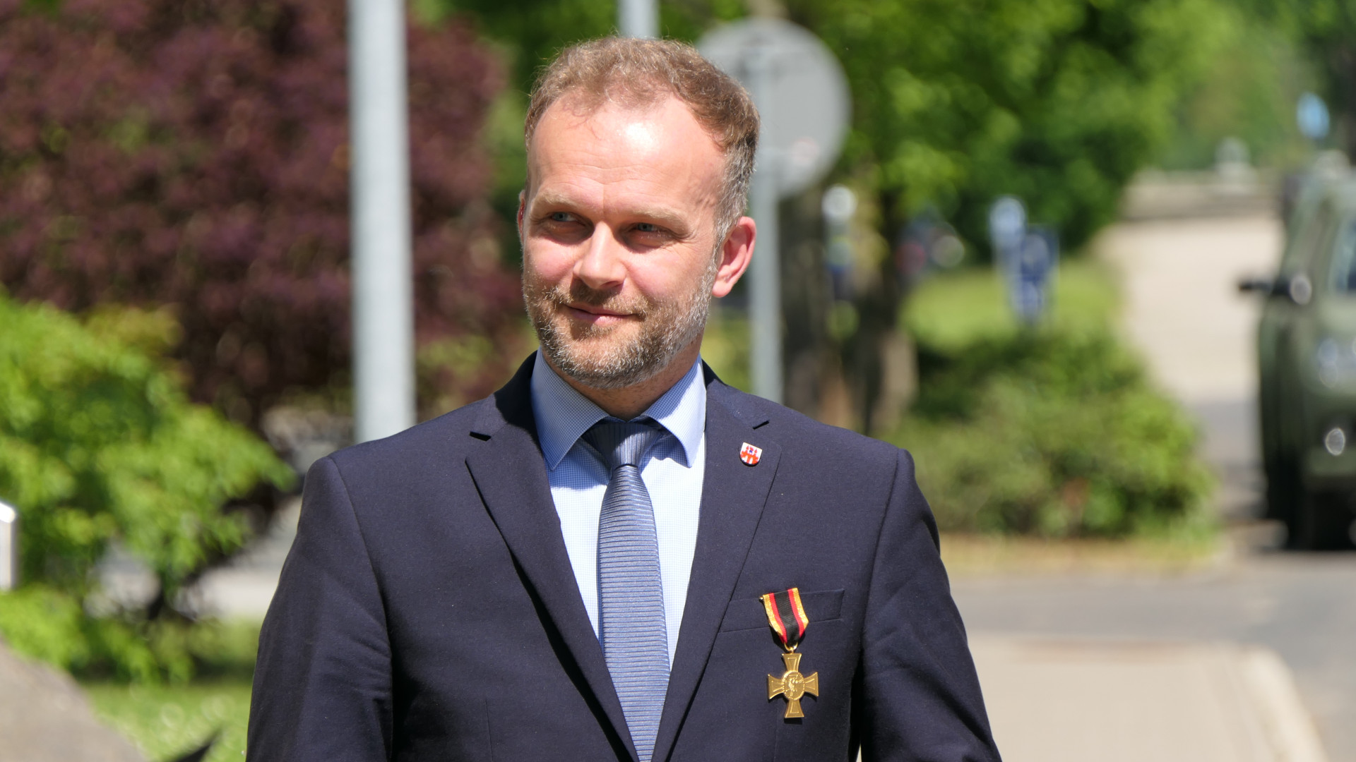Das Ehrenkreuz der Bundeswehr in Gold hat Oberst Christian Nawrat von der Panzergrenadierbrigade 41 „Vorpommern“ in dieser Woche an Neubrandenburgs Oberbürgermeister Silvio Witt verliehen. Das Ehrenkreuz in Gold ist die höchste militärische Auszeichnung, die in der Bundesrepublik Deutschland einem Zivilisten verliehen werden kann. Geehrt wurde der Oberbürgermeister, weil er den 2014 mit der Bundeswehr abgeschlossenen Partnerschaftsvertrag „mit Leben füllt“.