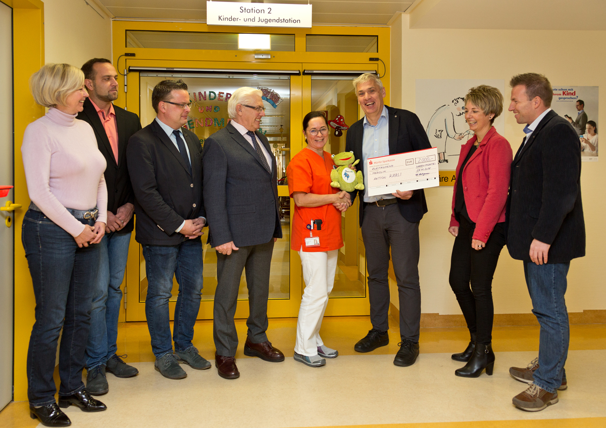 Chefärztin Dr. Kathrin Hake will „Karli“ auch weiterhin auf ihrer Station einsetzen, doch das knuffige Kerlchen kostet natürlich auch. Rund 4000 Euro sind im Jahr nötig, um die kleinen Patienten mit „Karli“ zu erfreuen. 2000 Euro kommen aus der Klinik-Kasse, und die fehlenden 2000 Euro für das kommende Jahr hat jetzt das Autohaus Schlingmann beigesteuert. So ist „Karlis“ Anwesenheit auf der Kinder- und Jugendstation für 2019 auf jeden Fall gesichert.